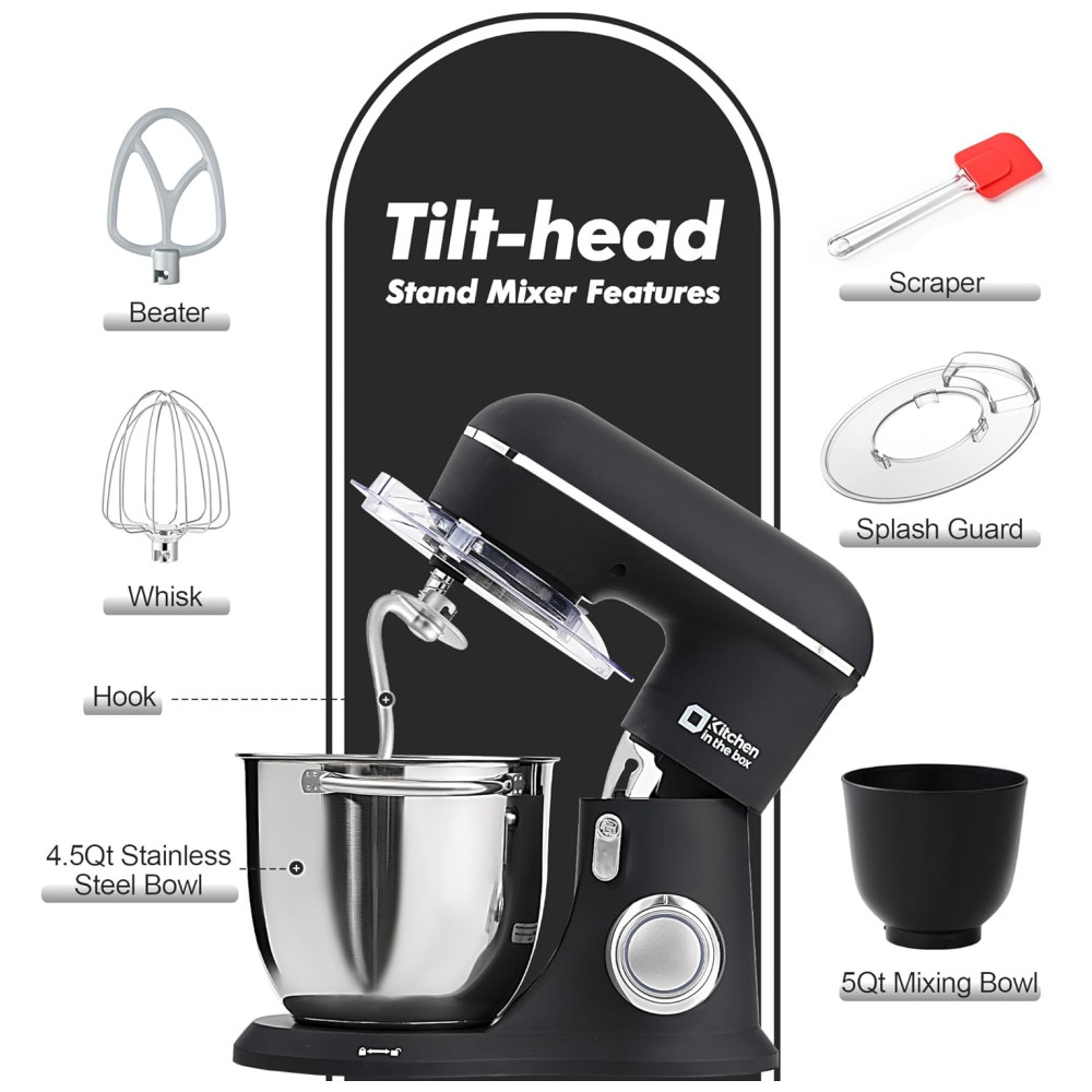 Batedeira Kitchen in the box com Design Elegante e Acabamento Matte 425L473L Duas Tigelas Preta Ônix.