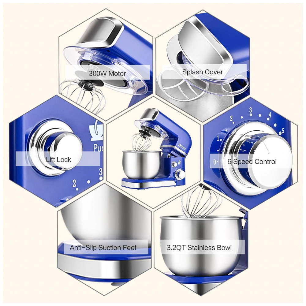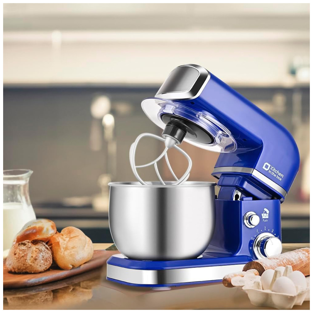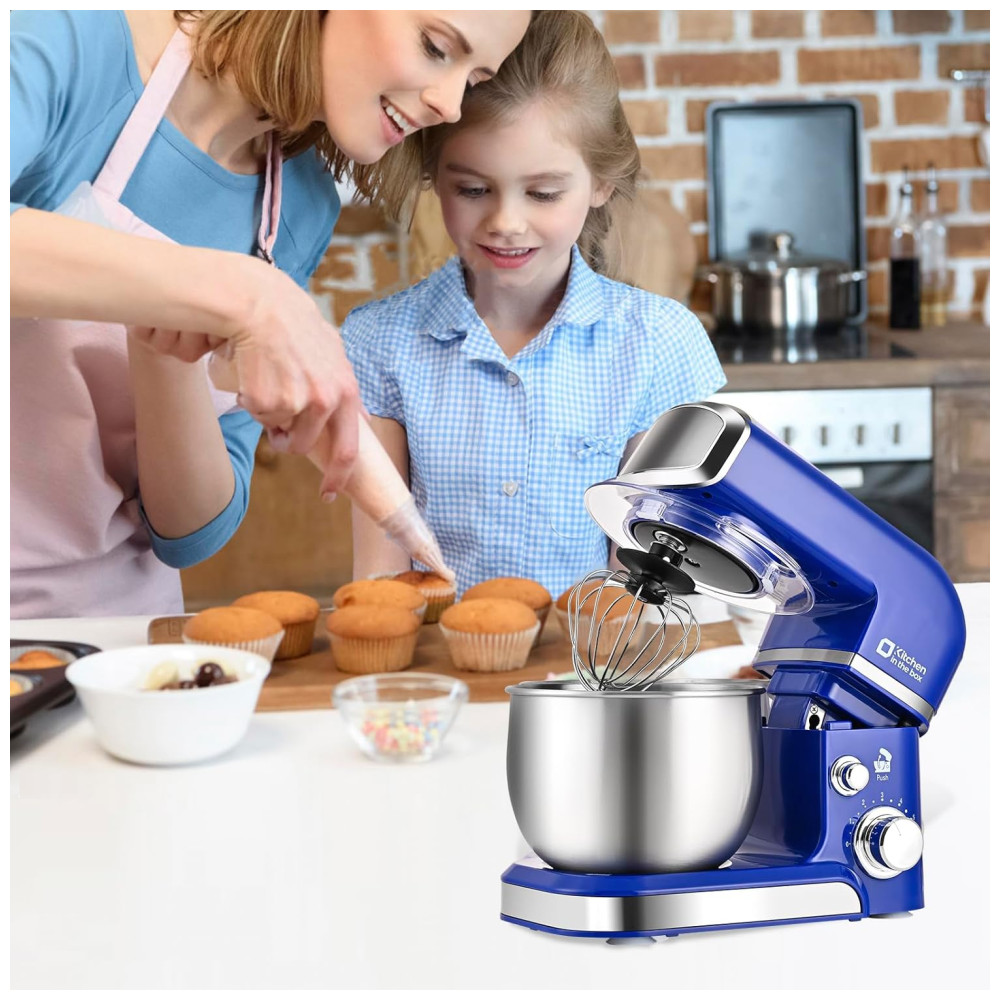 A batedeira Kitchen in the box Stand Mixer é compacta, leve e fácil de armazenar, pesando menos de 3,5kg e com dimensões de 32,8cm x 17,8cm x 25,9cm. Perfeita para cozinhas pequenas, apartamentos ou espaços limitados. Com capacidade de 3 litros, é equipada com tigela de aço inox e design de inclinação que facilita a operação e limpeza. Possui 6 velocidades para diversas receitas, além de 4 ventosas antiderrapantes que mantêm a batedeira estável durante o uso. Acompanha gancho de massa e batedor de claras em alumínio, além de um batedor de aço inox. Um presente excelente para familiares e amigos.