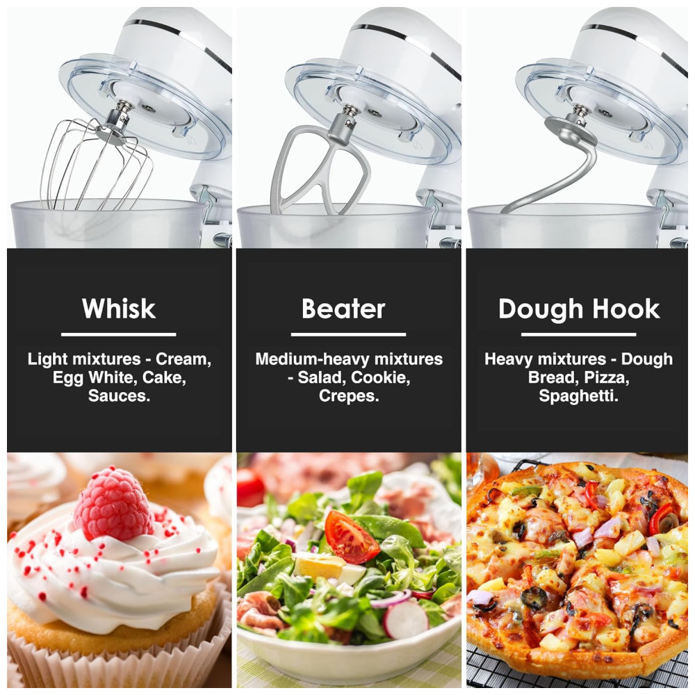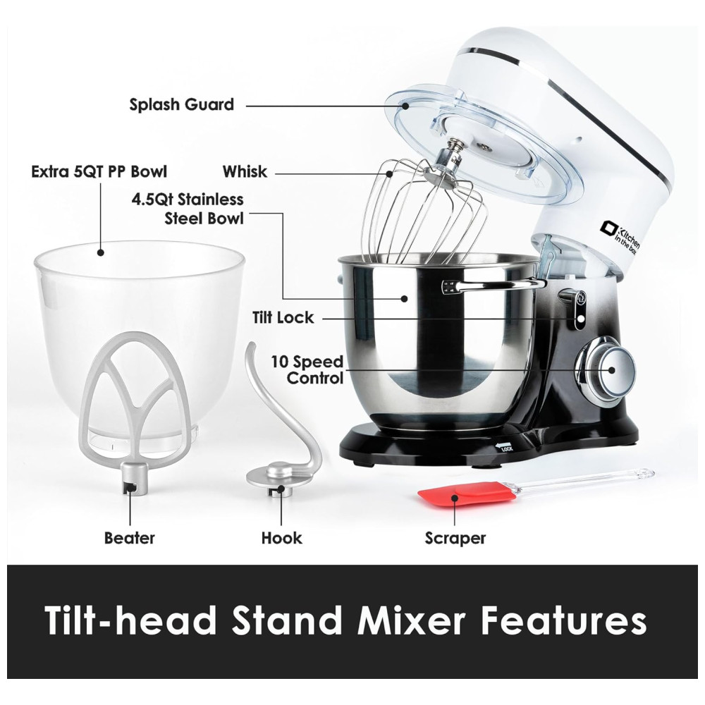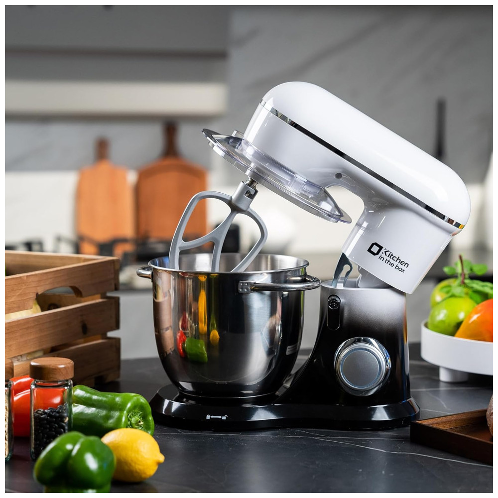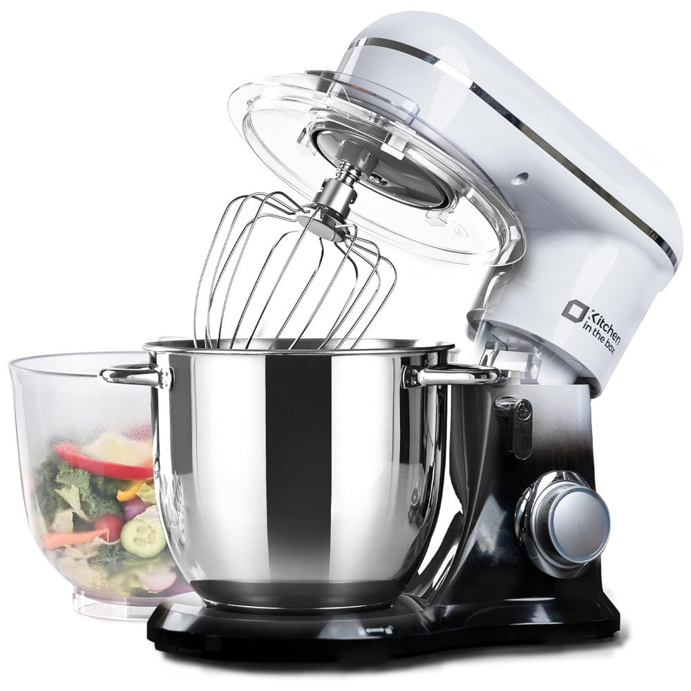 A Batedeira Kitchen in the box Stand Mixer é perfeita para suas necessidades de mistura e preparo de alimentos. Equipada com tigela de aço inoxidável de 4,5Litros e tigela extra de plástico seguro para alimentos de 5Litros, oferece 10 velocidades para diversas receitas. Com design elegante, possui ganchos de massa e batedor de alumínio, batedor de aço inoxidável e é fácil de limpar. O design que economiza espaço com as tigelas aninhadas torna-a ideal para sua cozinha. Escolha entre várias cores. Um presente excelente para amigos e familiares.