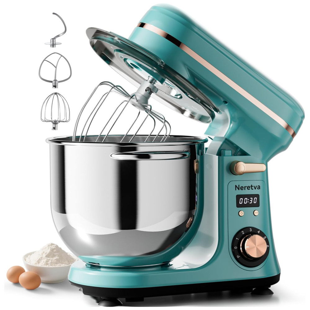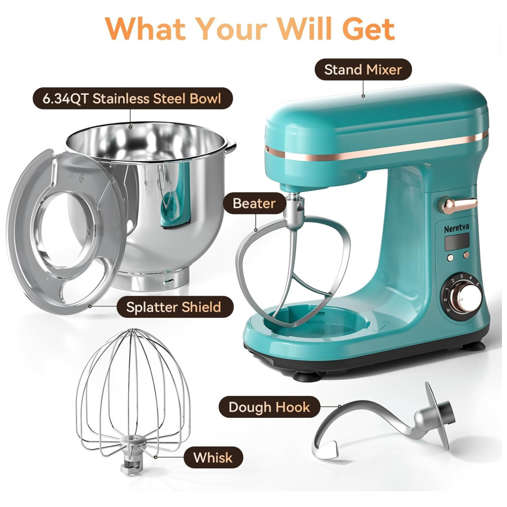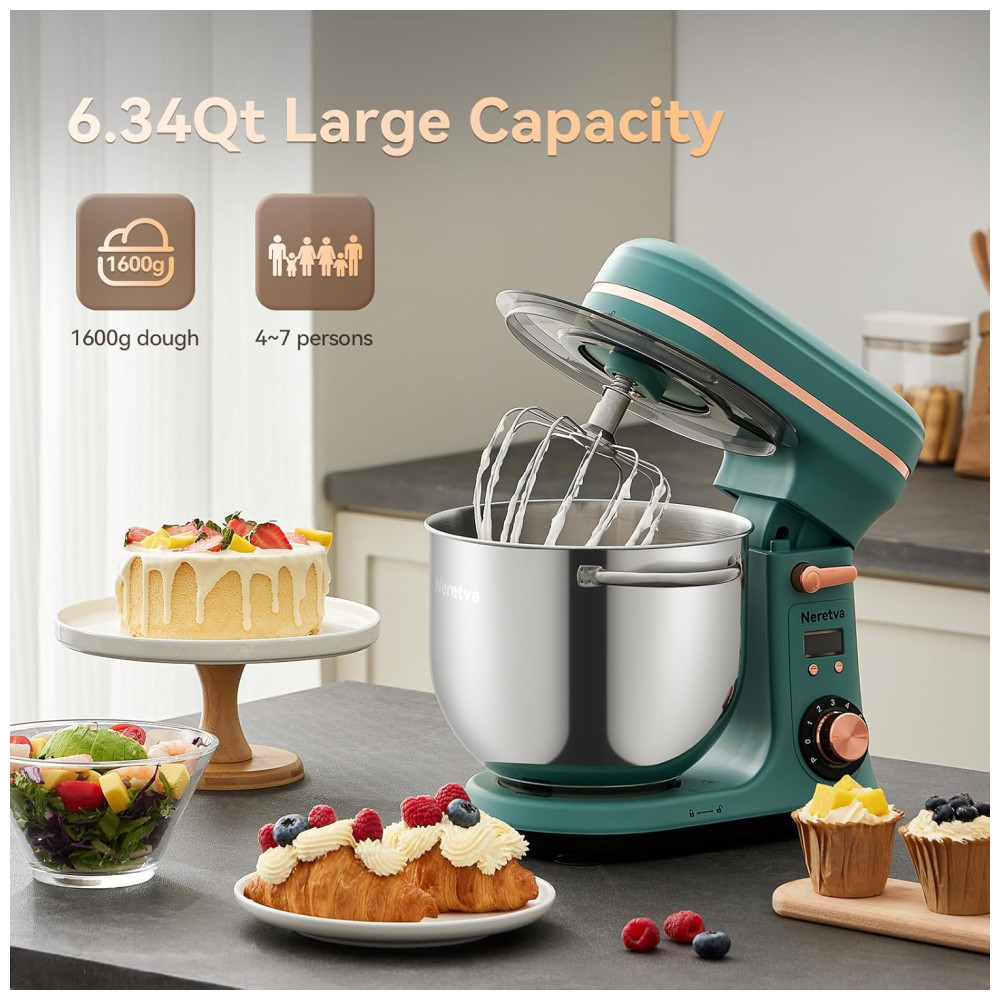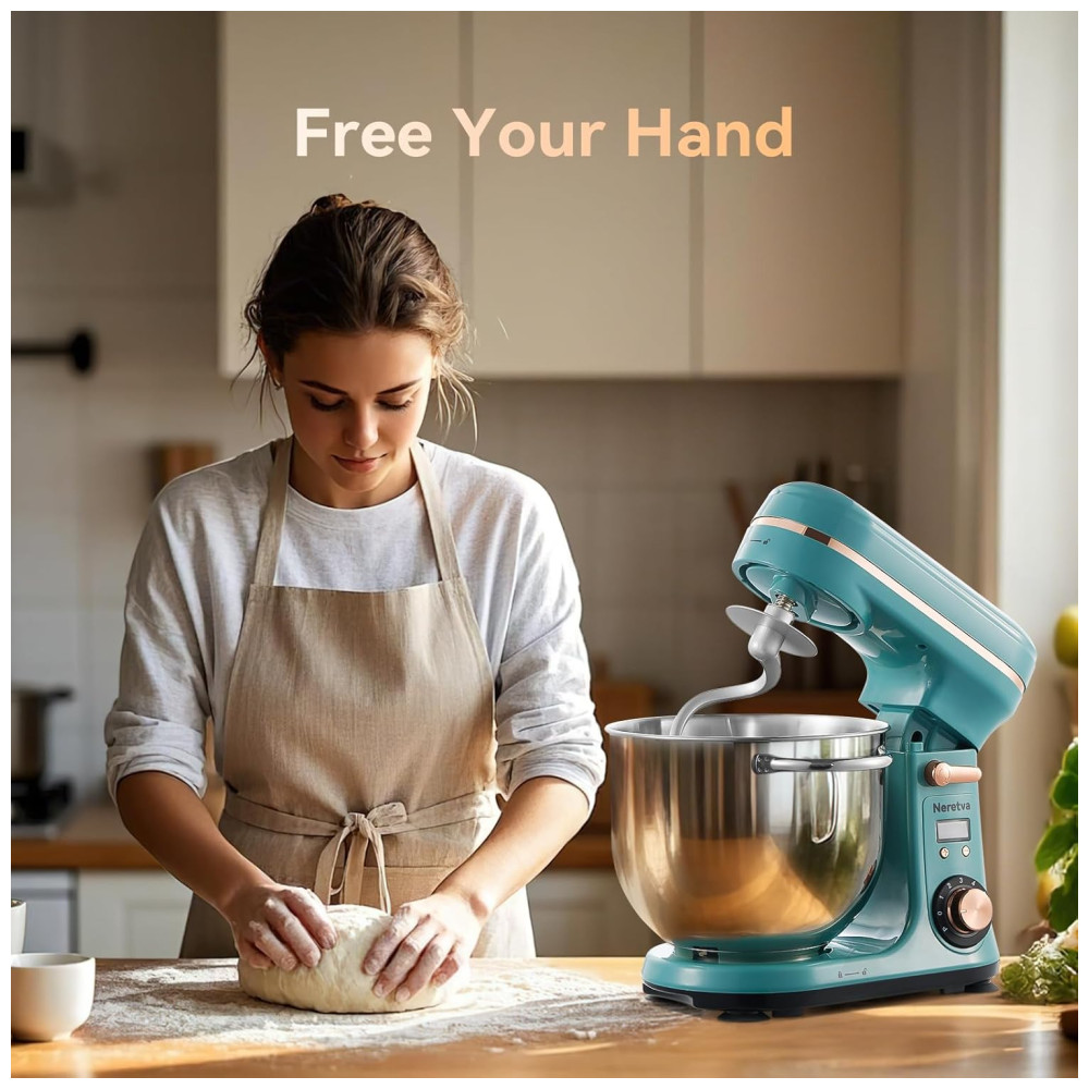 Batedeira Neretva 634litros 6 Velocidades 400W com Display LED e Capacidade Grande de Aço Inoxidável – Inclui Tigela Batedor Gancho para Massa