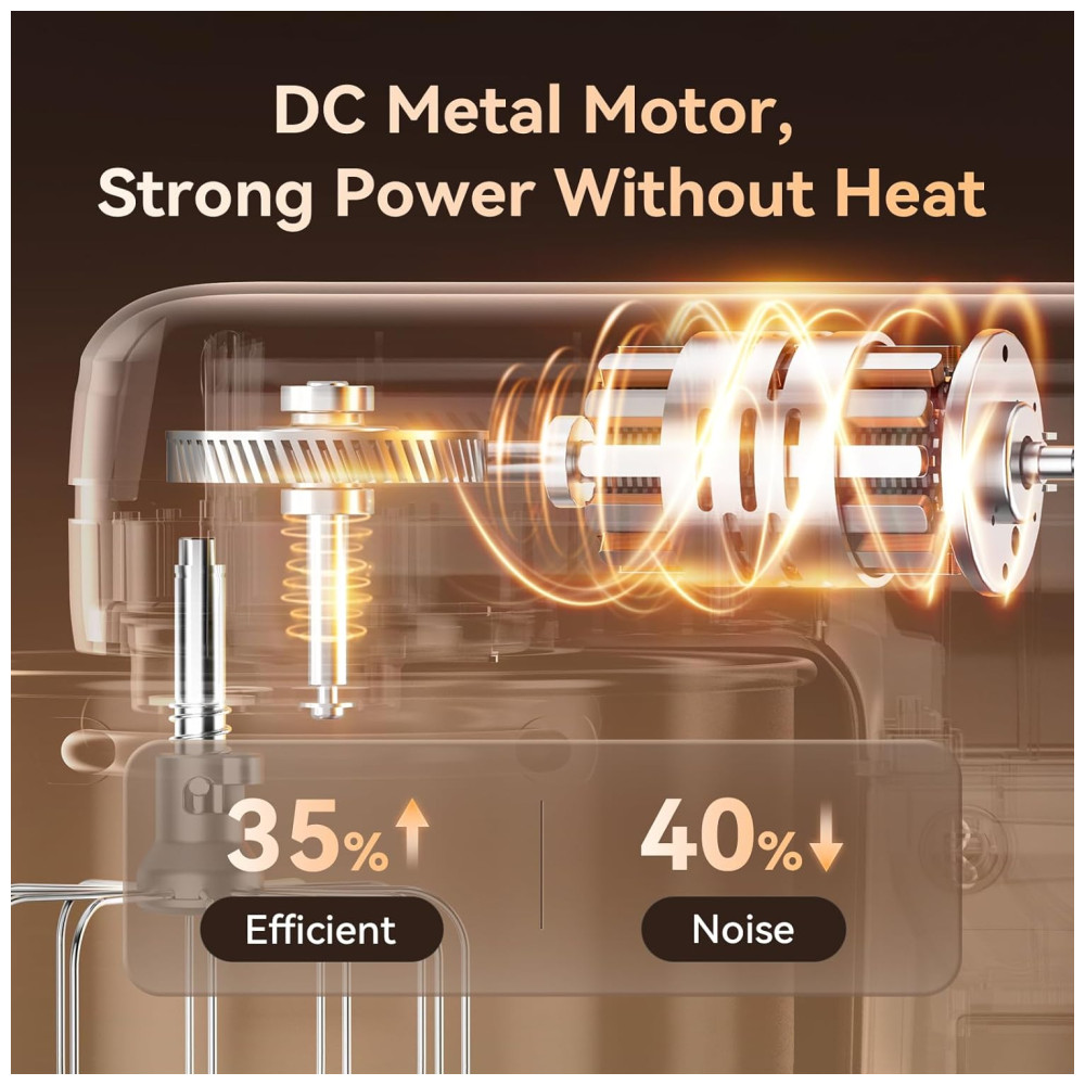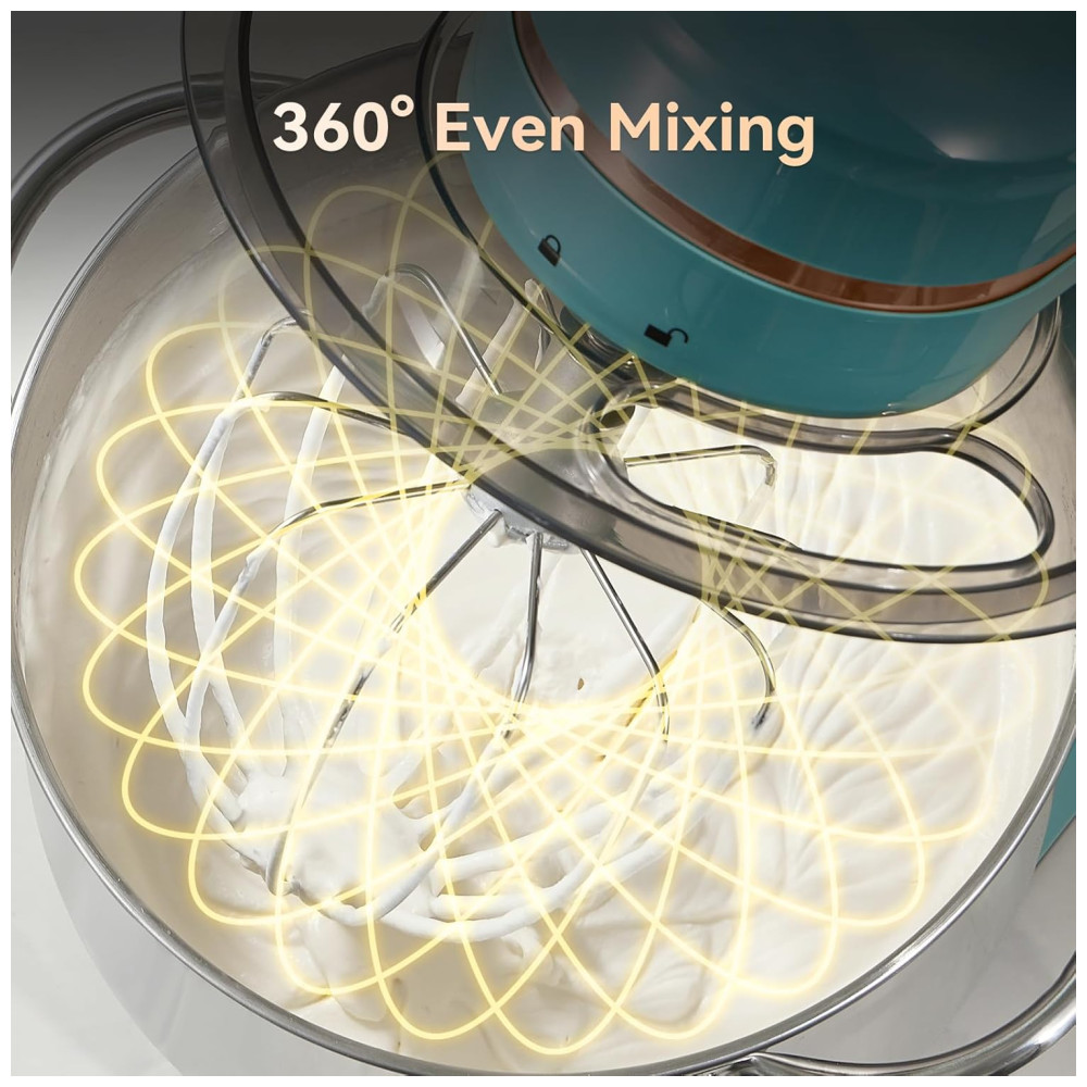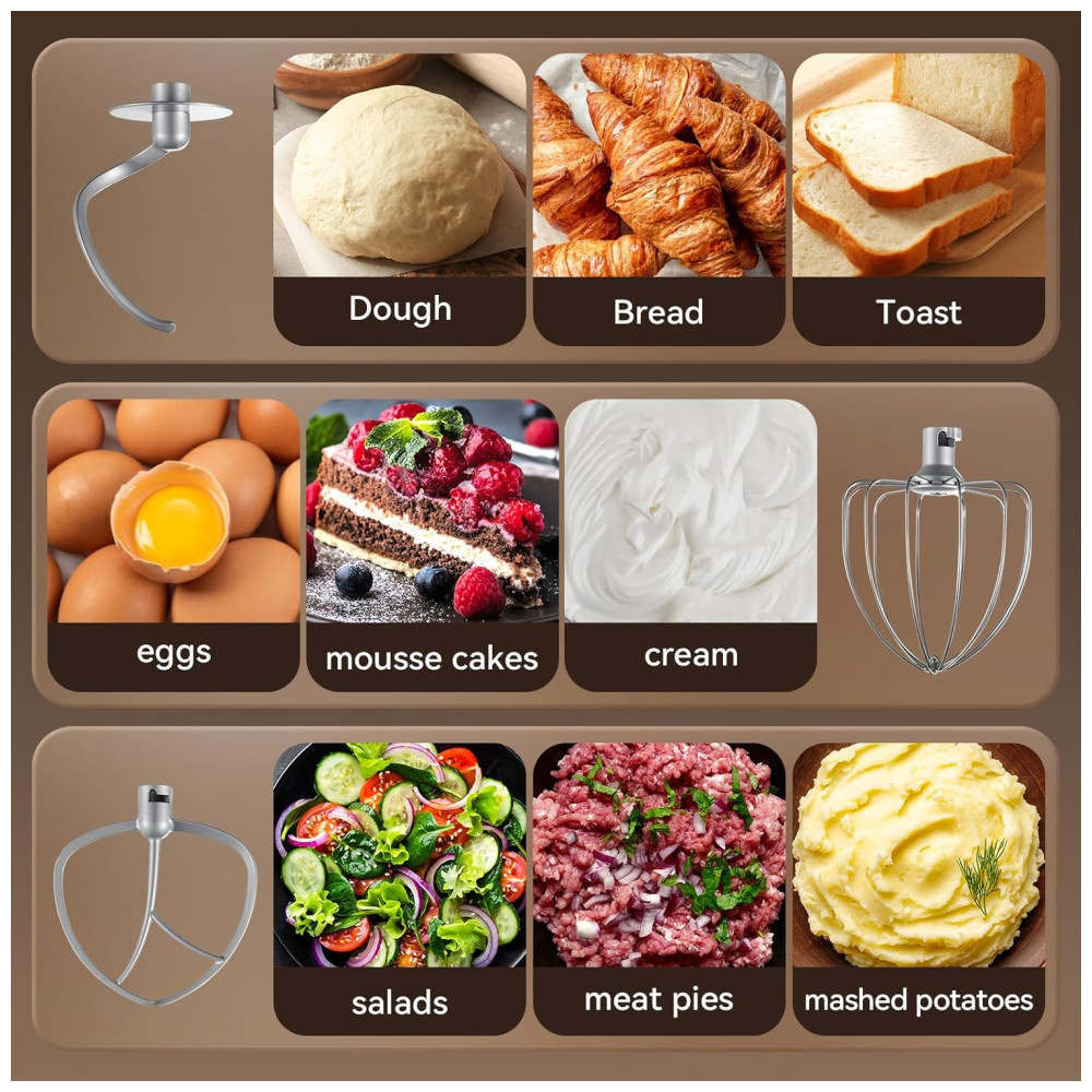 Característica Especial: Material Elegante de Aço Inoxidável, Batedeira com Inclinação, Capacidade de 6,34 Litros, Motor DC de 400W, Mistura Uniforme 360°, Display Digital LED e Temporizador,