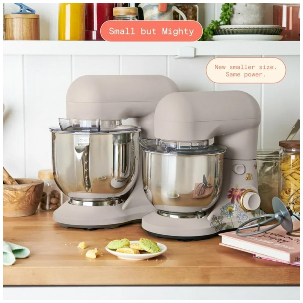 A batedeira planetária Beautiful 3,3L Wildflower Porcini Taupe combina sofisticação, robustez e praticidade para uso doméstico. Com motor de 300W, 12 velocidades e taça de inox com alça, processa desde massas leves até densas — capaz de misturar até 60 cookies de uma só vez. Seu sistema Tilt-Head permite inclinar a cabeça para facilitar o acesso e a adição de ingredientes durante o preparo. Acompanha protetor Splash Guard contra respingos e acessórios completos: batedor raquete revestido, gancho para massas e batedor globo inoxidável. Todos os acessórios são livres de BPA, removíveis e compatíveis com lava-louças para limpeza fácil. Corpo com acabamento soft matte taupe, design elegante e alta durabilidade.