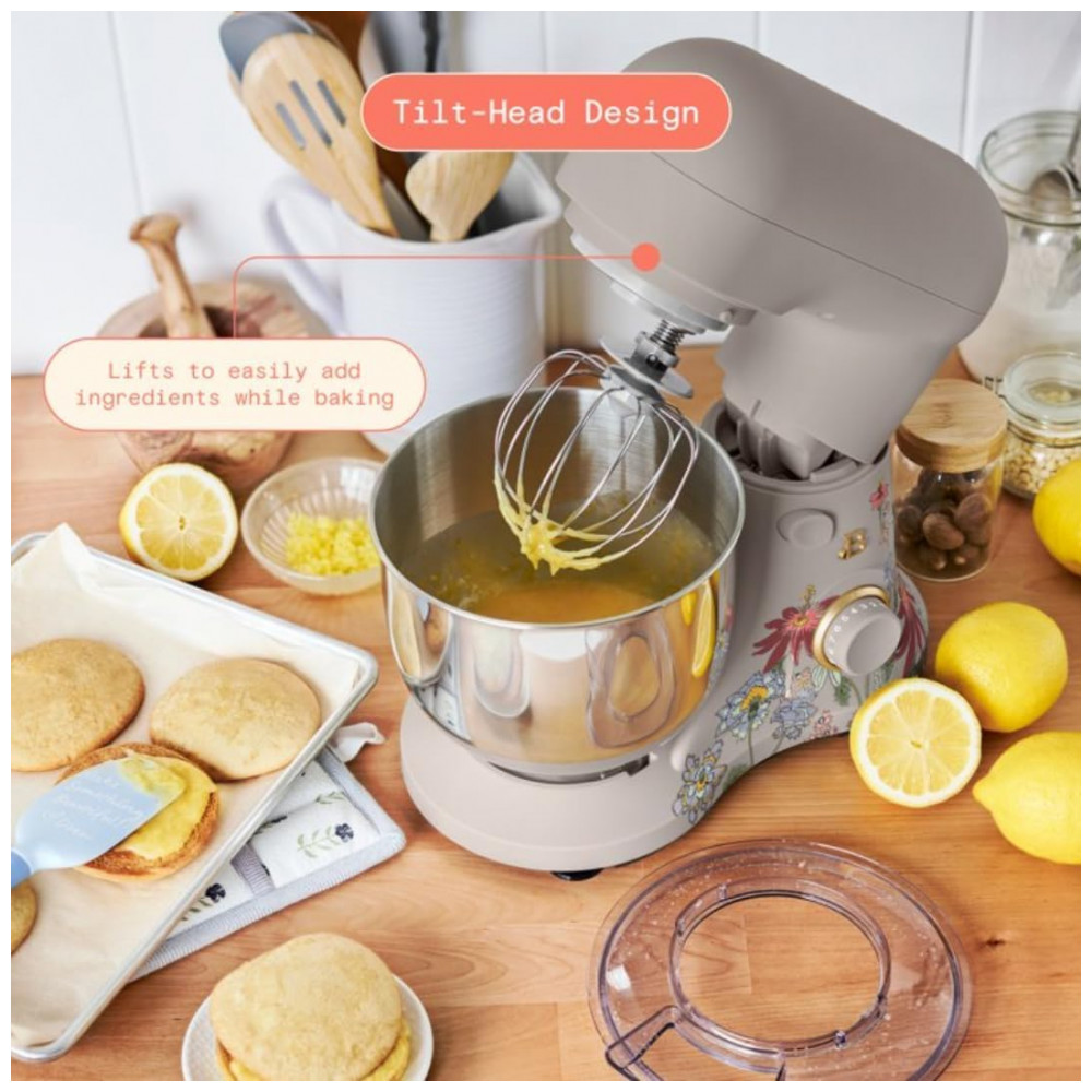 Batedeira Planetária 33L Beautiful Wildflower Porcini Taupe 12 Velocidades Taça Inox Tilt-Head Splash Guard 300W 110V
