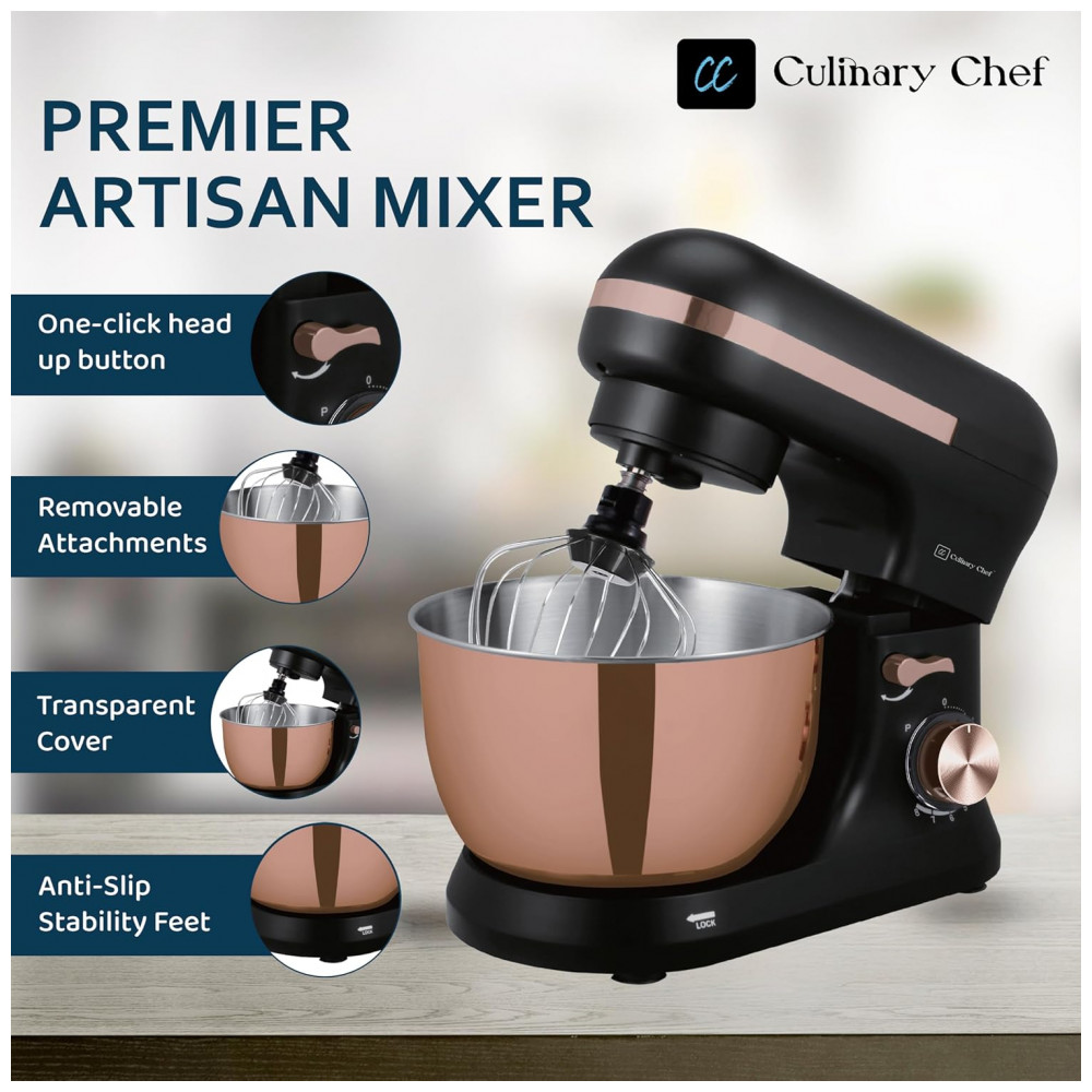 Batedeira planetária CULINARY CHEF retrô Rose Gold Bowl Edição Especial tigela inox 45L 8 velocidades 300W cabeça basculante 110V
