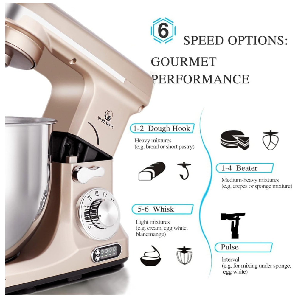 Batedeira Profissional de Bancada com Temporizador 6Litros 500W 6 Velocidades Cabeçote Inclinável Máquina de Cozinha Elétrica – MURENKING
