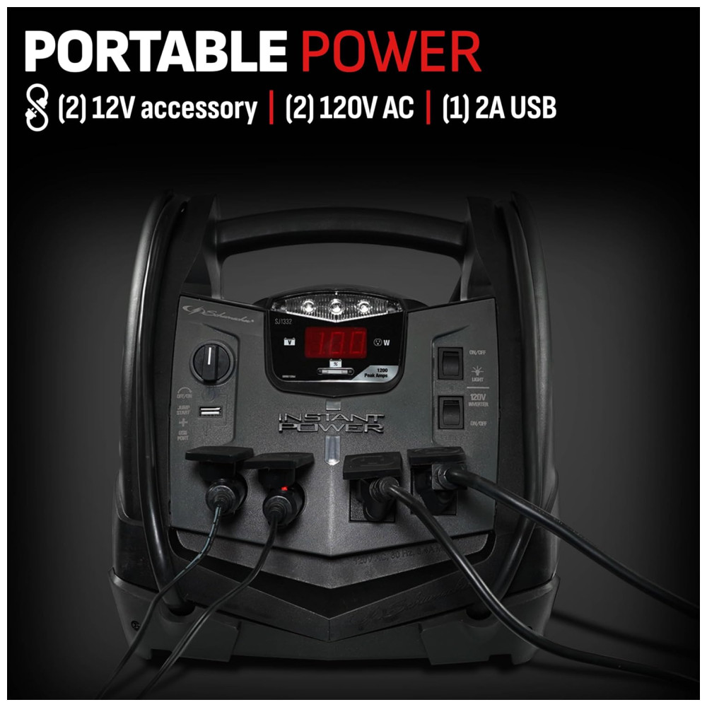 Bateria de Carro Auxiliar Schumacher 1200 Peak Amp Jump Starter Compressor de Ar