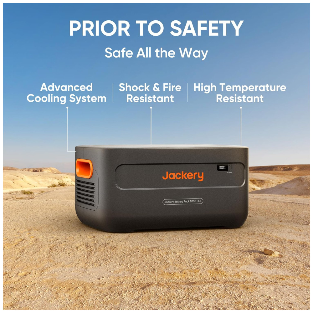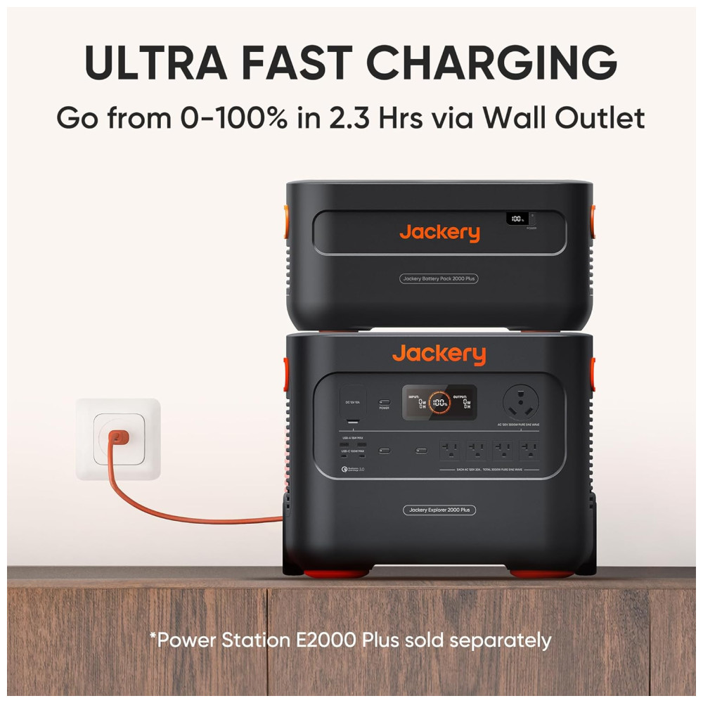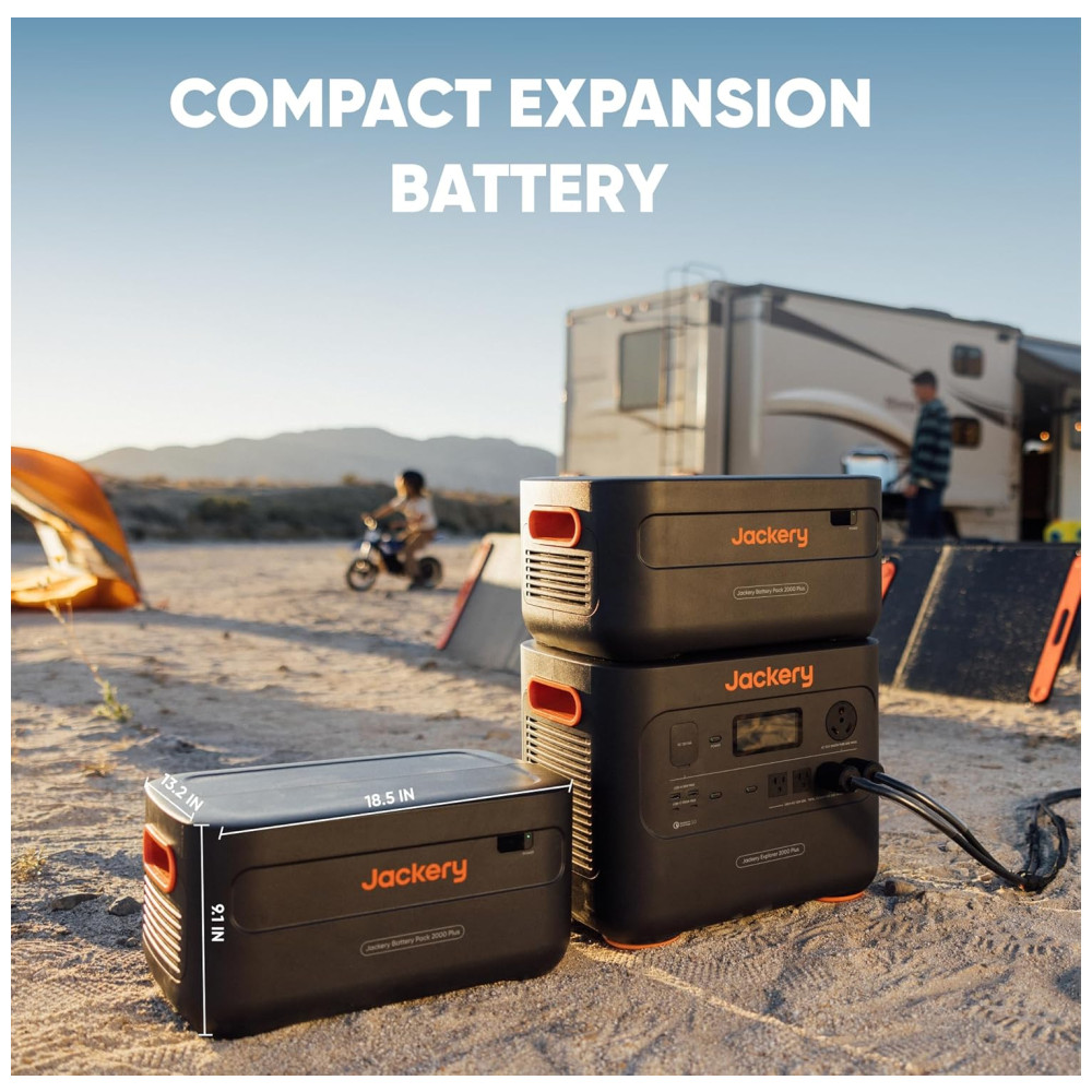 A bateria de expansão Jackery 2000 Plus é uma bateria de expansão projetada para ser usada com o Jackery Explorer 2000 Plus vendido separadamente. Com capacidade de 2.042,8 Wh, esta bateria oferece uma grande quantidade de energia para alimentar dispositivos eletrônicos em situações de emergência ou quando não há uma tomada elétrica disponível. É possível expandir ainda mais a capacidade do Explorer 2000 Plus conectando até 5 baterias de expansão, ou conectando em paralelo 2 Jackery Explorer 2000 Plus junto com 10 baterias de expansão adicionais, aumentando a capacidade para 24 kWh, tensão para 240 V e saída para 6000 W.