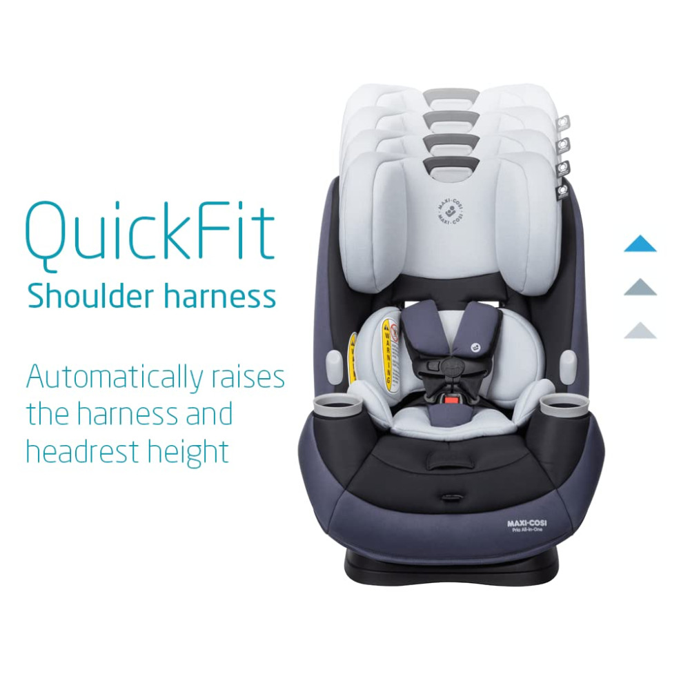 O arnês de ombro QuickFit eleva automaticamente a altura do arnês e do apoio de cabeça