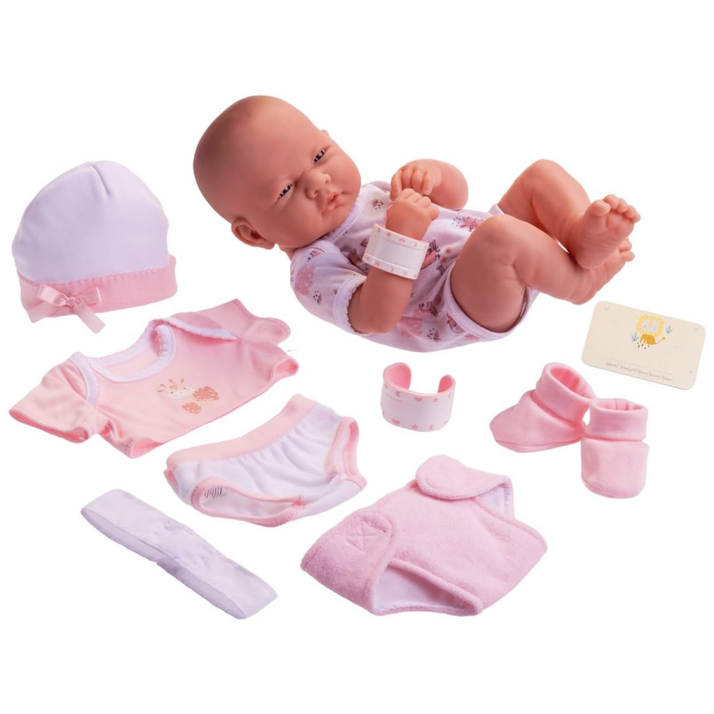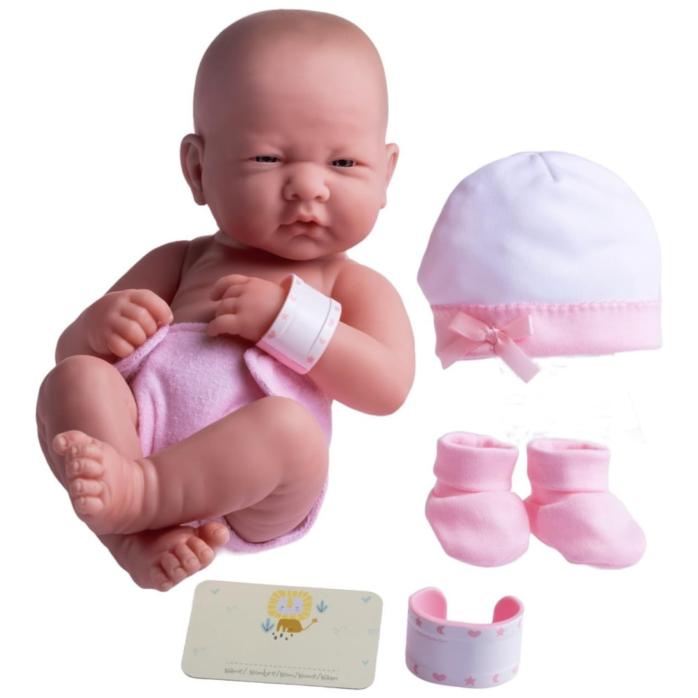 Bebê Recém-Nascido Newborn Boneca para Bebê 8 peças JC Toys La Newborn Nursery 35 cm Boneca Realista com Acessórios Rosa
