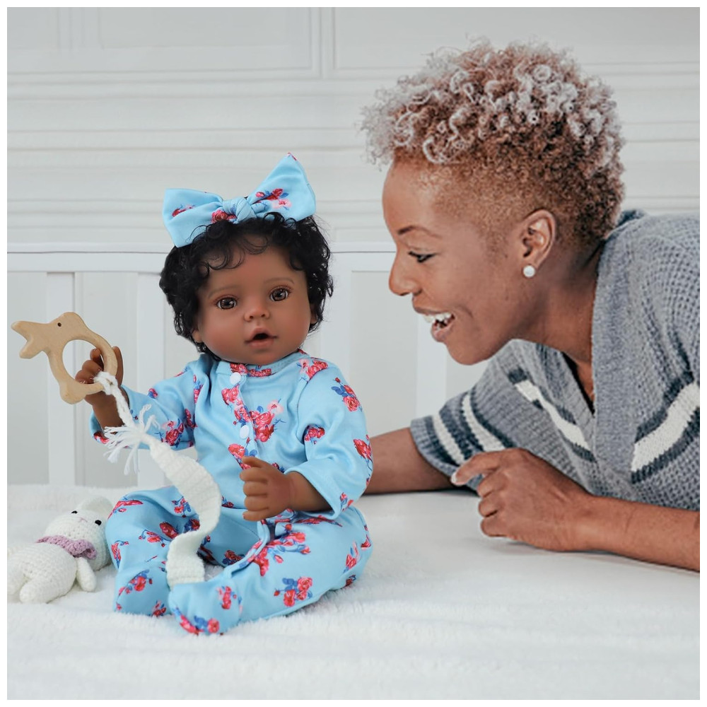 Bebê Recém-Nascido NewbornBoneca Realista SCOM Vida Real Renascida 50 Centímetros Afrodescendente Corpo de Tecido Acolchoado