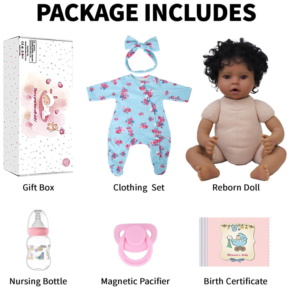 Representação da Beleza: Esta boneca reborn apresenta uma pele escura e rica que celebra a beleza. Sua textura de pele realista e paleta de cores proporcionam um brilho natural e acolhedor, tornando-a um símbolo de diversidade e inclusão. Realismo Excepcional: Com cabelos enraizados à mão e cílios delicadamente confeccionados, esta boneca é projetada com os mais altos padrões de realismo. Cada detalhe, desde seu tom de pele realista até seu corpo macio e ponderado, contribui para uma sensação autêntica que imita o suave peso de um bebê real. Proporções Ideais: Com 50 cm de altura, a boneca tem o tamanho de um recém-nascido ou prematuro médio, permitindo que ela use roupas e acessórios de bebê reais. Seus membros macios e posáveis fazem dela não apenas uma companheira reconfortante, mas também uma ótima ferramenta para ensinar e nutrir. Garantia de Segurança: A segurança é primordial, e esta boneca não é exceção. Ela atende aos rigorosos requisitos de segurança da ASTM F963 e EN71.Fabricada com vinil macio premium e algodão PP de alta qualidade, garante uma experiência de jogo segura e durável. Companheira Perfeita para Presentear: Perfeita para diversas ocasiões, esta boneca reborn é um presente ideal para o Natal, aniversários.Sua aparência realista a torna uma companheira estimada para crianças aprendendo sobre cuidado e empatia ou para adultos em busca de uma presença reconfortante.