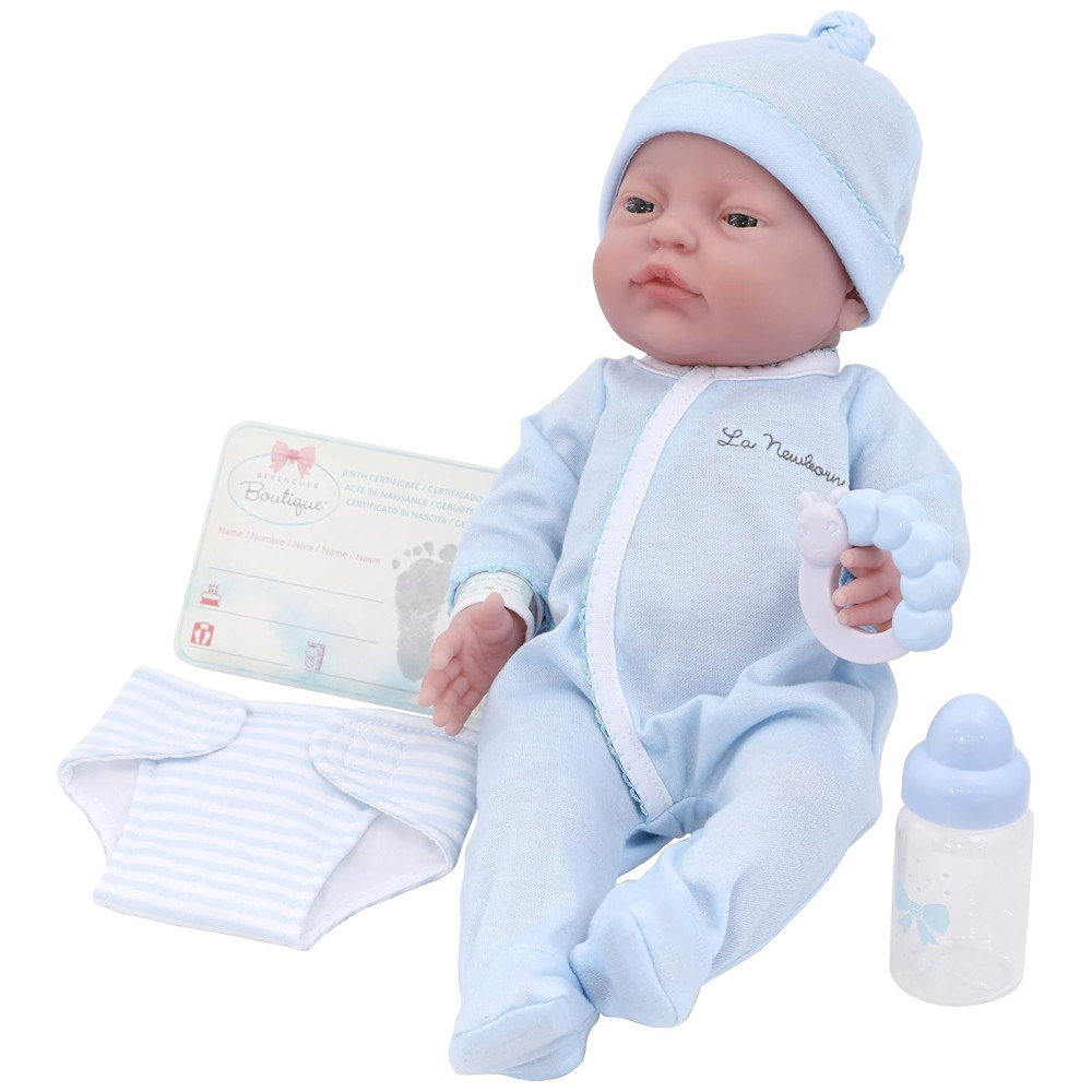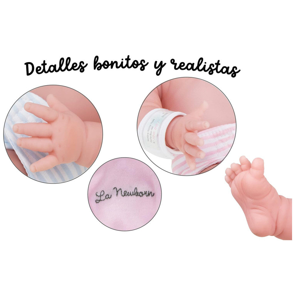 Encante-se com este belo e realista boneco bebê da JC Toys. Apresentando o design original e adorável do La Newborn, este boneco de 43 cm é perfeita para brincadeiras de vestir. O conjunto de presente inclui fralda, pijama, boné combinando, chocalho, mamadeira, certidão de nascimento e hospital. Com membros articulados nos ombros, quadris e pescoço, permitindo posicionar os braços e pernas ao vestir e tirar a roupa. Fabricada em vinil testado e aprovado, livre de BPA e sem cheiro, seguro para crianças. Corpo lavável e posável promove ações de cuidado e carinho, ensinando habilidades de cuidar. Tamanho perfeito para abraçar e amar. Produzida pela JC Toys, uma premiada designer de bonecos bebê com mais de 30 anos de experiência. Orgulhosamente desenhada por Berenguer.