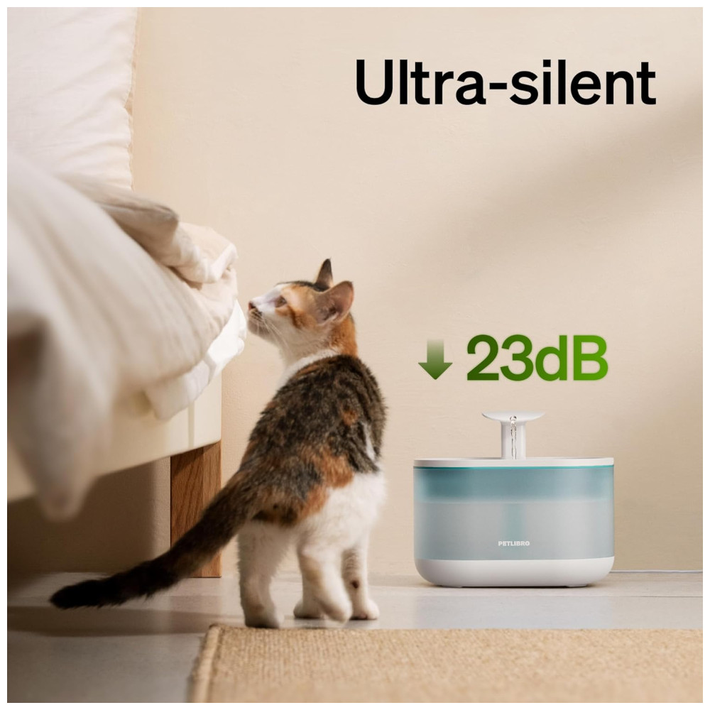 A bomba opera em silêncio absoluto (menos de 23 dB), ideal para ambientes sensíveis a ruído, e inclui armazenamento emergencial de 80 ml em caso de quedas de energia. A janela transparente lateral permite monitoramento prático do nível de água. O produto acompanha 4 filtros extras, escova de limpeza, bomba, adaptador de força, tubos e manual. Fácil montagem e higienização das peças internas, recomendando troca dos filtros e limpeza da bomba a cada 2 semanas. Indicada para uso interno doméstico.