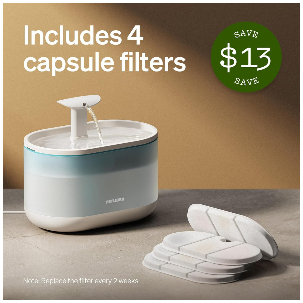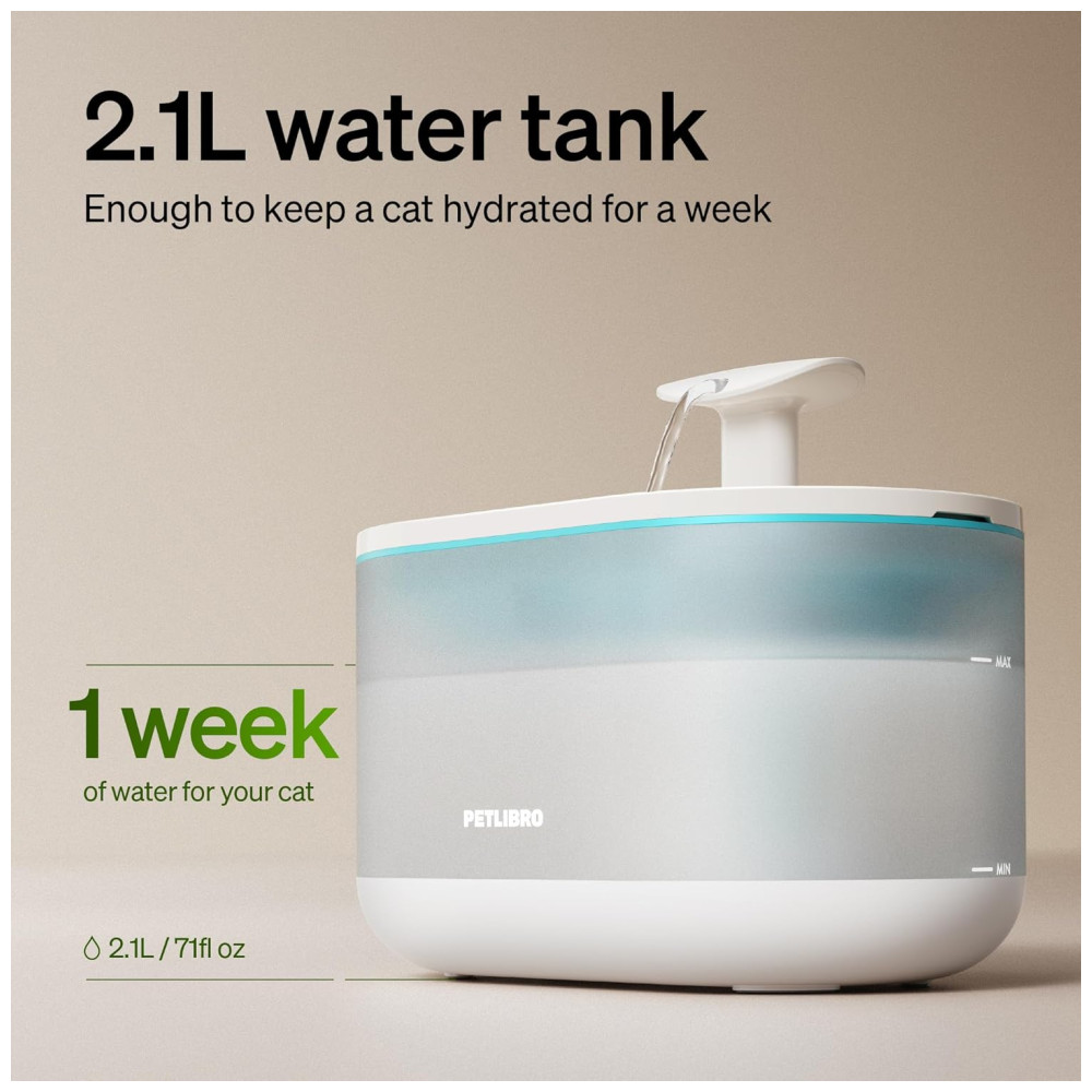 A fonte automática PETLIBRO cápsula foi desenvolvida para gatos e cães de pequeno e médio porte, com capacidade de 2,1 litros e corpo em plástico ABS azul livre de BPA. Dispõe de sistema de filtragem quádrupla (carvão ativado, resina de troca iônica, tecido não tecido e esponja), que garante água sempre fresca, oxigenada e livre de impurezas. Oferece dois modos de fluxo: jato borbulhante e cascata livre, para atender diferentes preferências dos pets enquanto estimula o consumo diário.