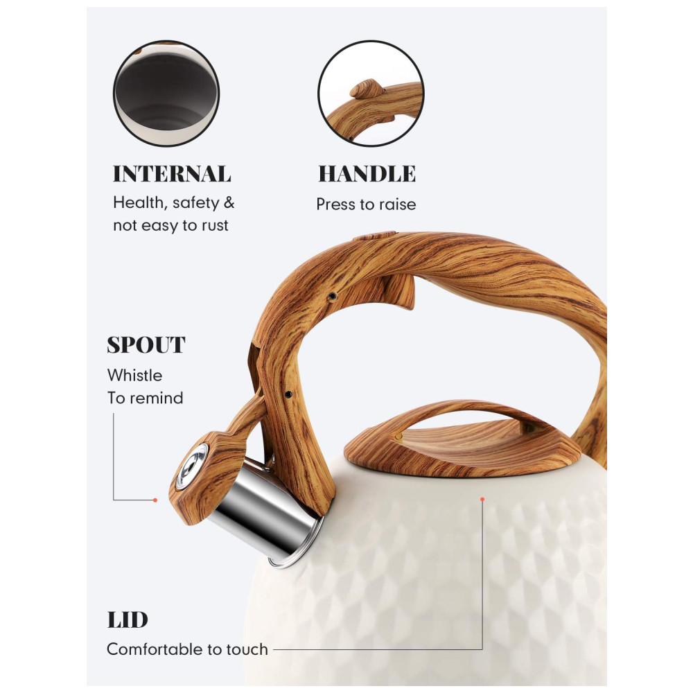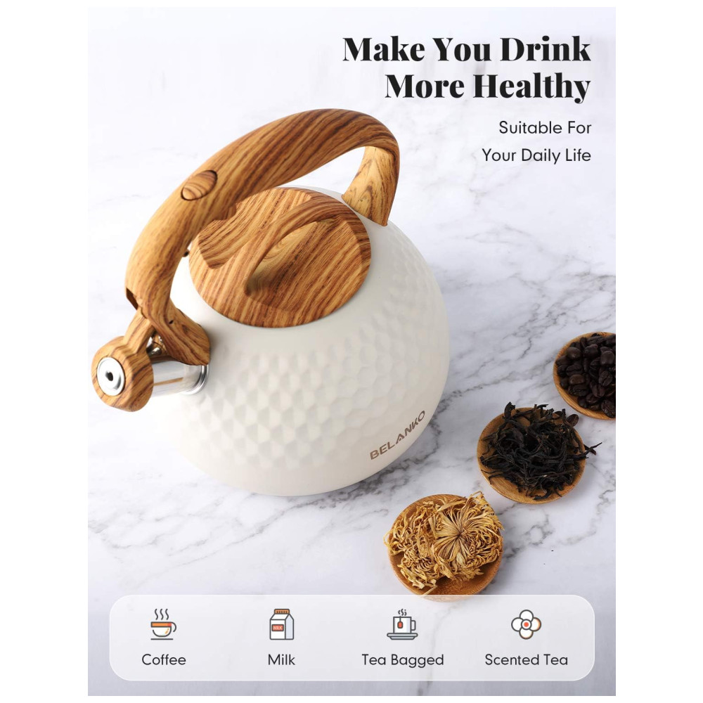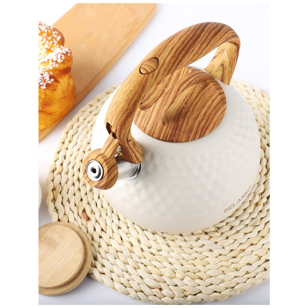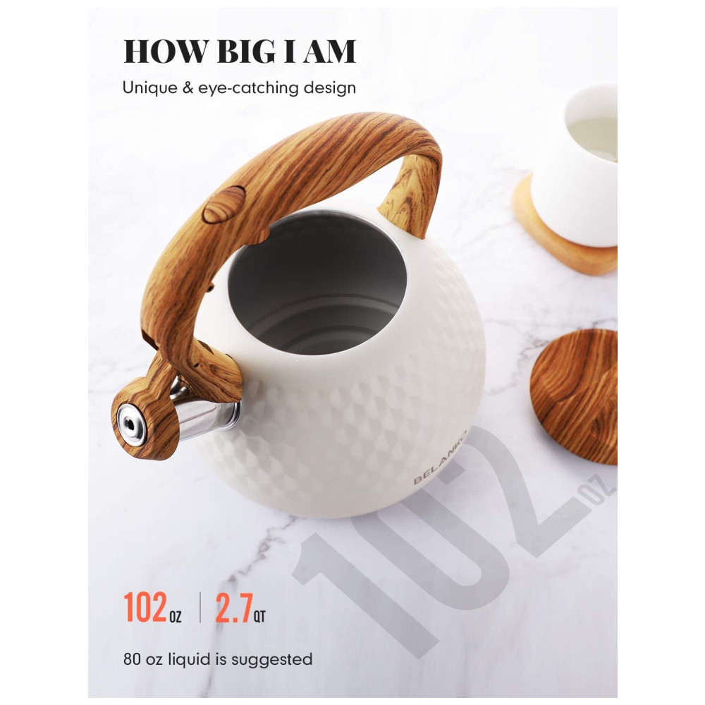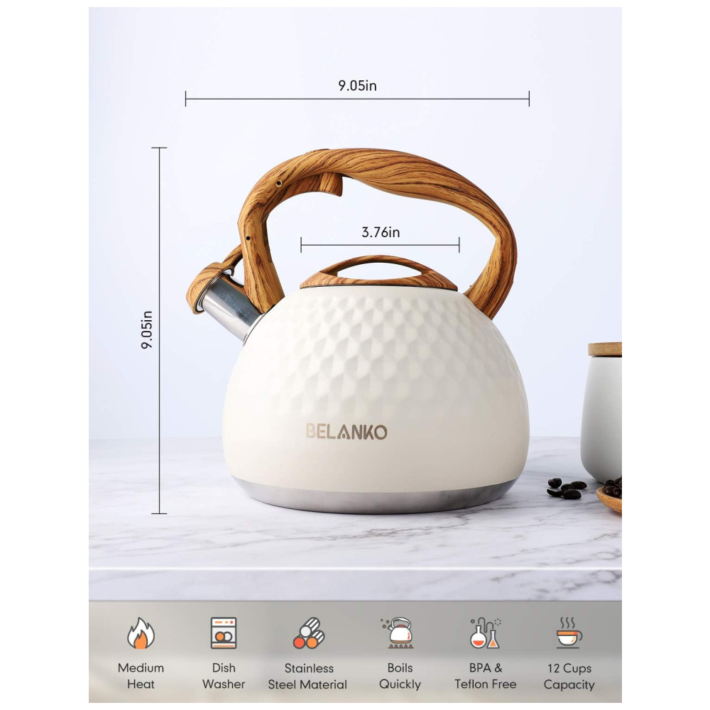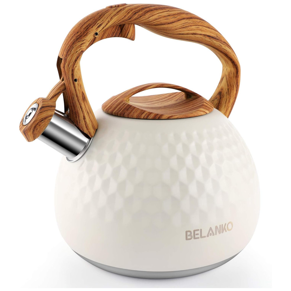 BELANKO Chaleira de Chá 2.7L com Apito Aço Inoxidável Branca