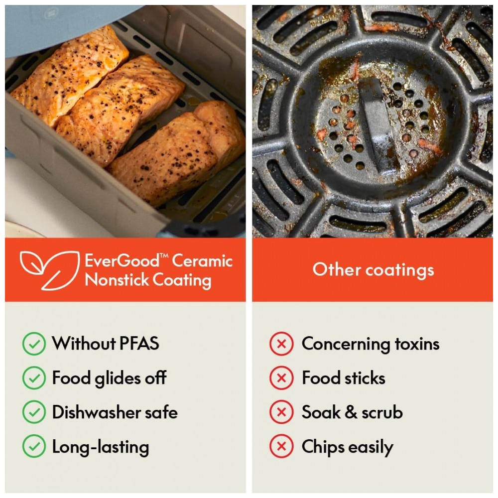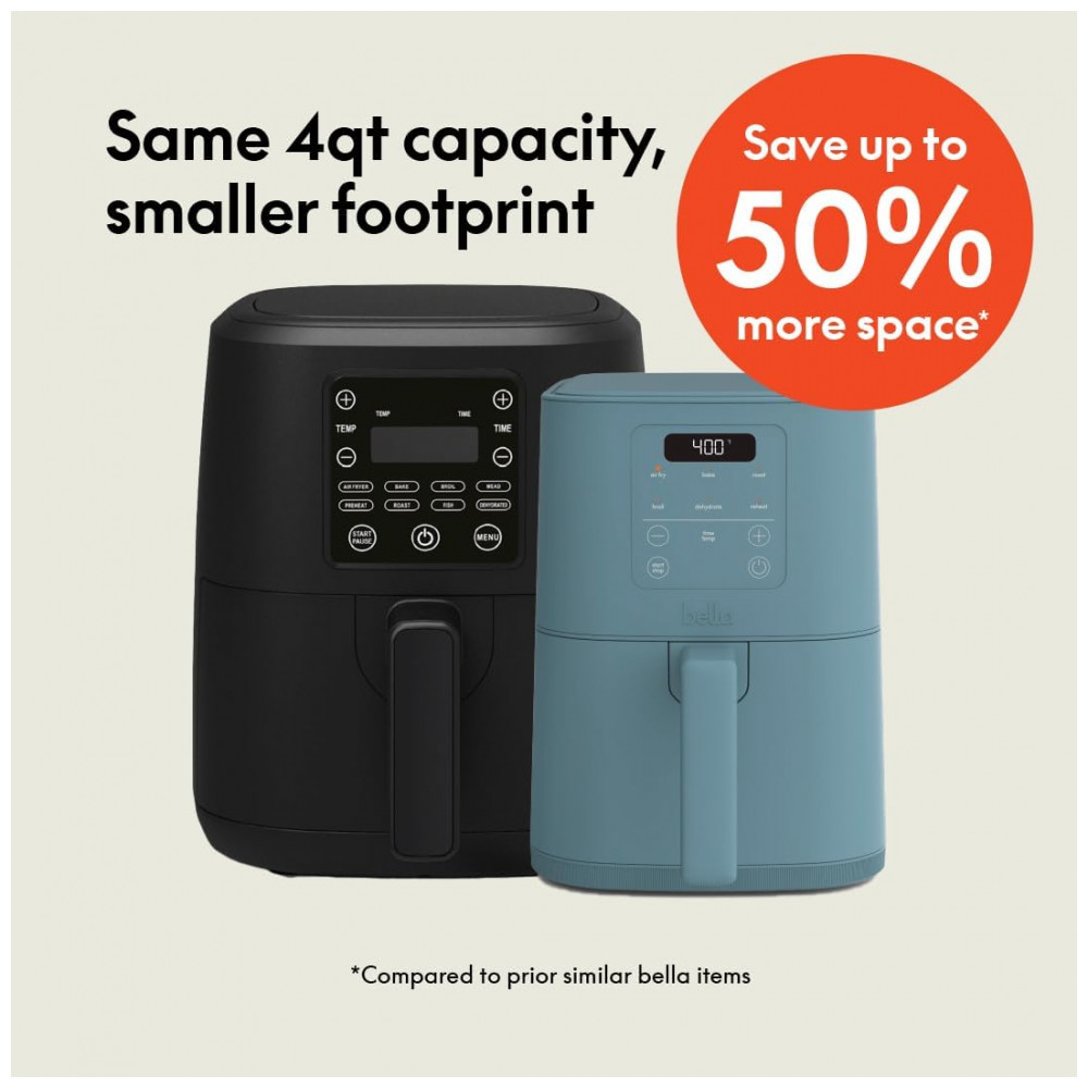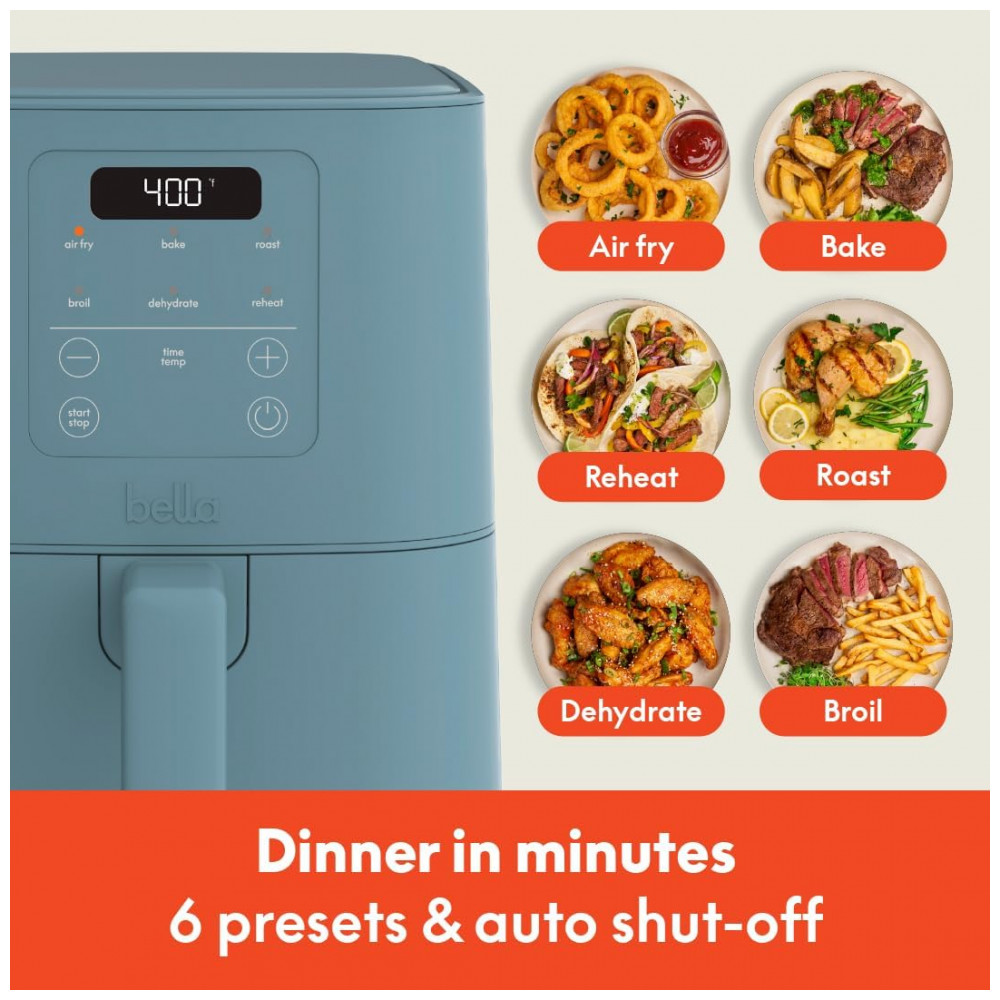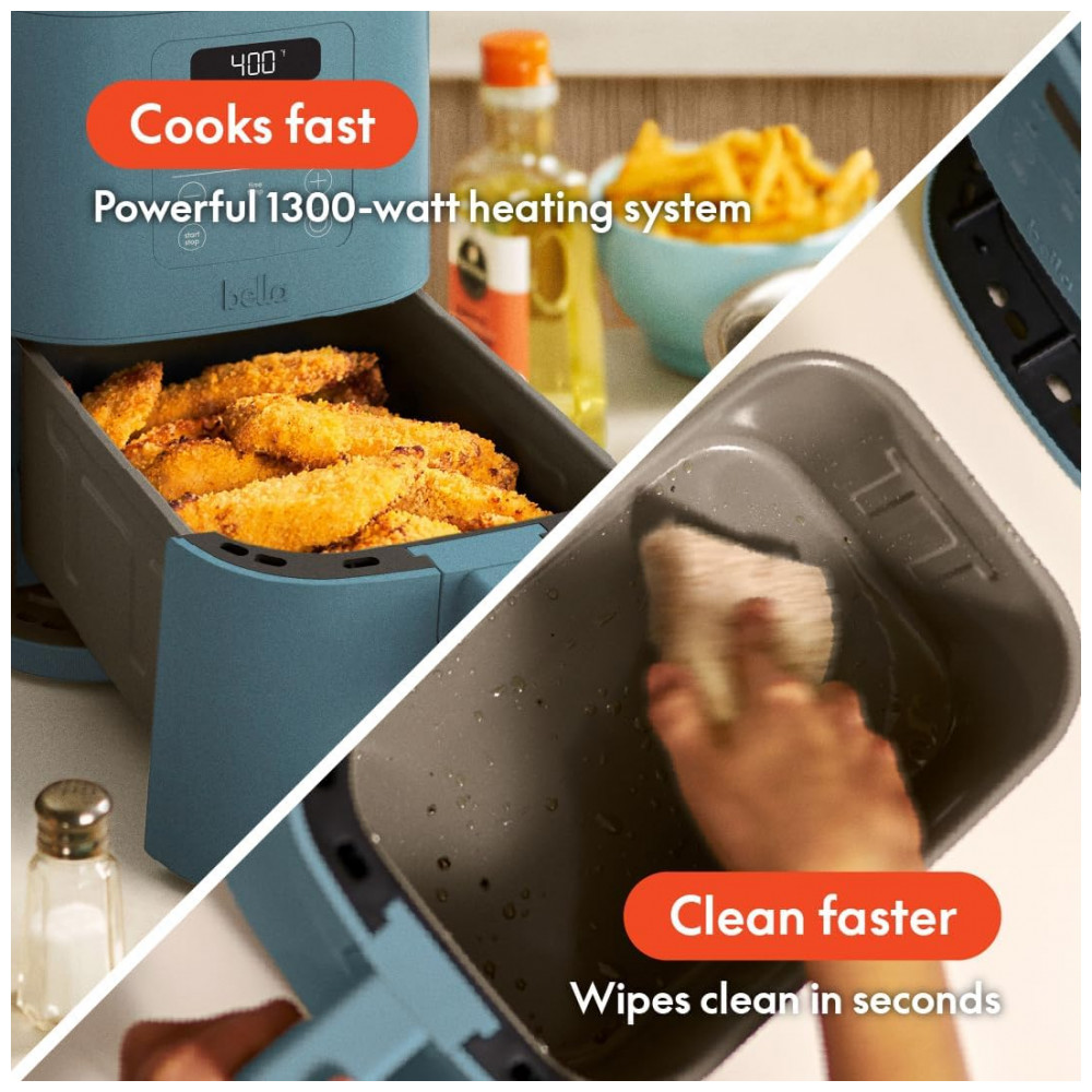 BELLA Air Fryer 4QT Slim – Cerâmica Antiaderrapante 6 Modos 33kg Controle Digital 1700W Design Compacto Surf