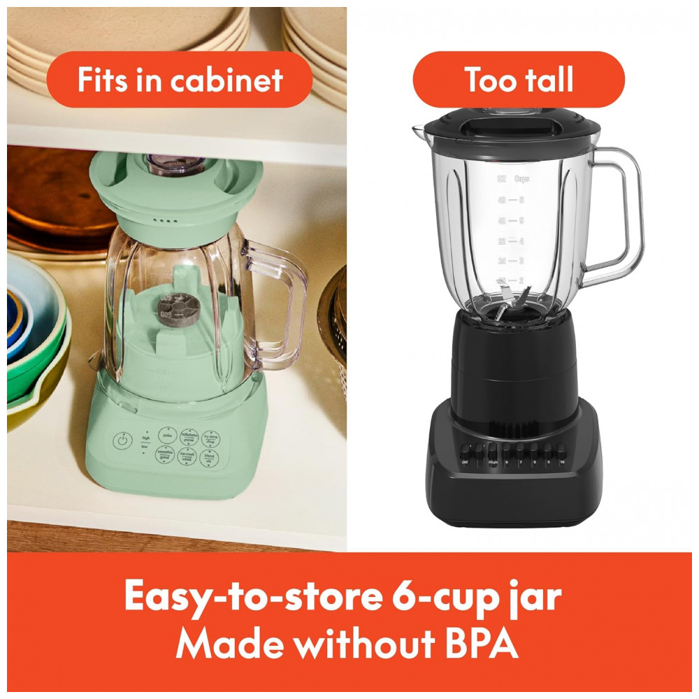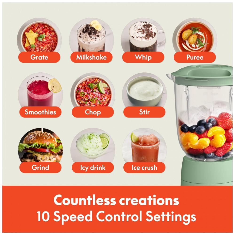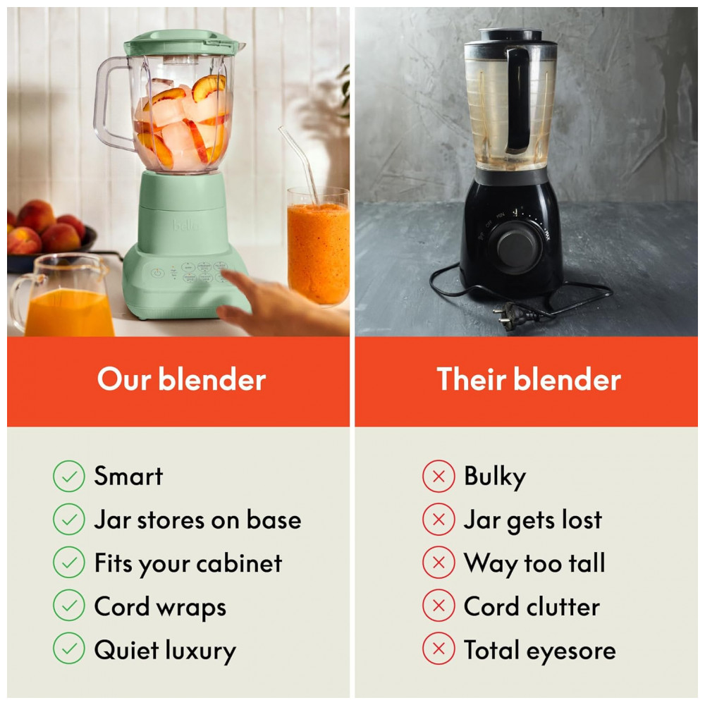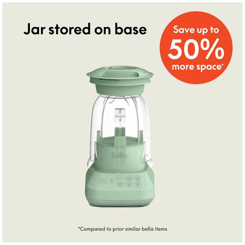 Apresentamos o BELLA Flip Store Blender, a combinação perfeita de potência e design compacto para cozinhas modernas. Com seu inovador design de armazenamento flip, este liquidificador se encaixa perfeitamente em qualquer armário, mantendo sua cozinha organizada e livre de bagunça. Seu perfil fino não só economiza espaço, mas também adiciona um toque sofisticado ao seu balcão. Equipado com um motor potente de 450 watts (pico de 520W) e uma lâmina durável de aço inoxidável com 4 pontas, este processador é capaz de triturar gelo, frutas frescas ou congeladas e vegetais com facilidade, garantindo resultados suaves e consistentes para seus smoothies, sopas cremosas ou shakes proteicos para toda a família. O jarro com capacidade generosa de 1,42 litros é ideal para preparar porções maiores, tornando-o uma ferramenta versátil para suas criações culinárias. O controle com 10 velocidades permite total flexibilidade para ajustar a textura, desde purês lisos até salsas mais rústicas. A tampa possui uma abertura prática que funciona como copo medidor, facilitando a adição de ingredientes durante o preparo. A limpeza é rápida e prática graças ao jarro e à tampa removíveis, que podem ser lavados na lava-louças. Disponível em cinco cores modernas – Oatmilk, Surf, Plum, Seaglass e Blossom – este liquidificador não é apenas funcional, mas também um presente perfeito para quem está montando um novo lar. O armazenamento do cabo na base mantém tudo arrumado e garante uma bancada sem desordem, enquanto você desfruta de um desempenho potente e eficiente a cada uso.