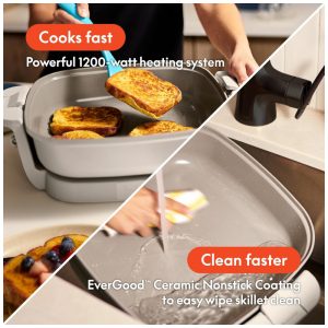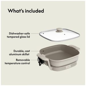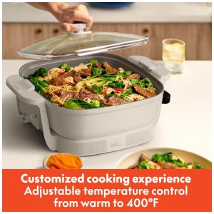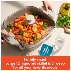 Prepare grandes refeições, armazene com facilidade e leve seus pratos para qualquer lugar com a Panela Elétrica BELLA Make Take. Com uma superfície quadrada de 30 cm e profundidade de 7,6 cm, é perfeita para jantares em família, festas e eventos. Prepare fajitas suculentas, caçarolas cremosas ou panquecas fofinhas com total praticidade. O sistema FitsanywhereTM economiza até 50% mais espaço com a tampa invertida que se trava no lugar, permitindo armazená-la na vertical e liberar espaço em seus armários. As travas robustas da tampa garantem que a comida fique segura, evitando derramamentos durante o transporte para churrascos, feriados ou encontros. Com controle de temperatura ajustável de até 204°C, é possível fritar, cozinhar lentamente, saltear ou selar tudo em uma única panela. O revestimento cerâmico EverGoodTM é livre de PFAS, PFOA e PTFE, promovendo uma culinária mais saudável, enquanto as alças resistentes ao toque e o sistema embutido para enrolar o cabo garantem mais praticidade. Disponível em diversas cores modernas para combinar com qualquer cozinha, essa panela é indispensável para quem busca cozinhar e receber com facilidade e estilo.