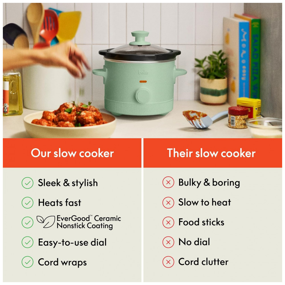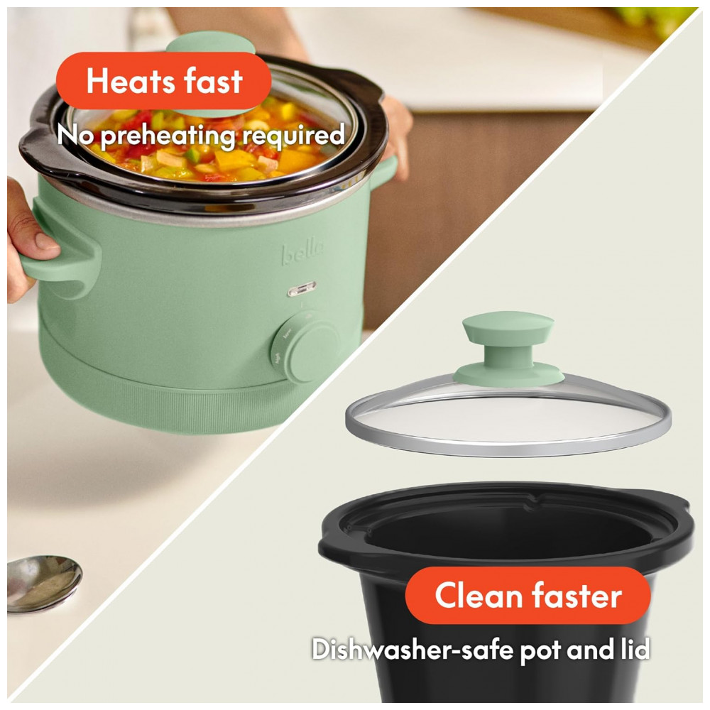 BELLA Mini Slow Cooker 15 Litros com 3 Temperaturas Revestimento Cerâmico Antiaderente e Tampa de Vidro Temperado – Seaglass