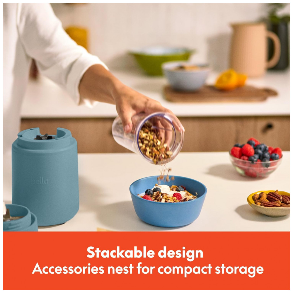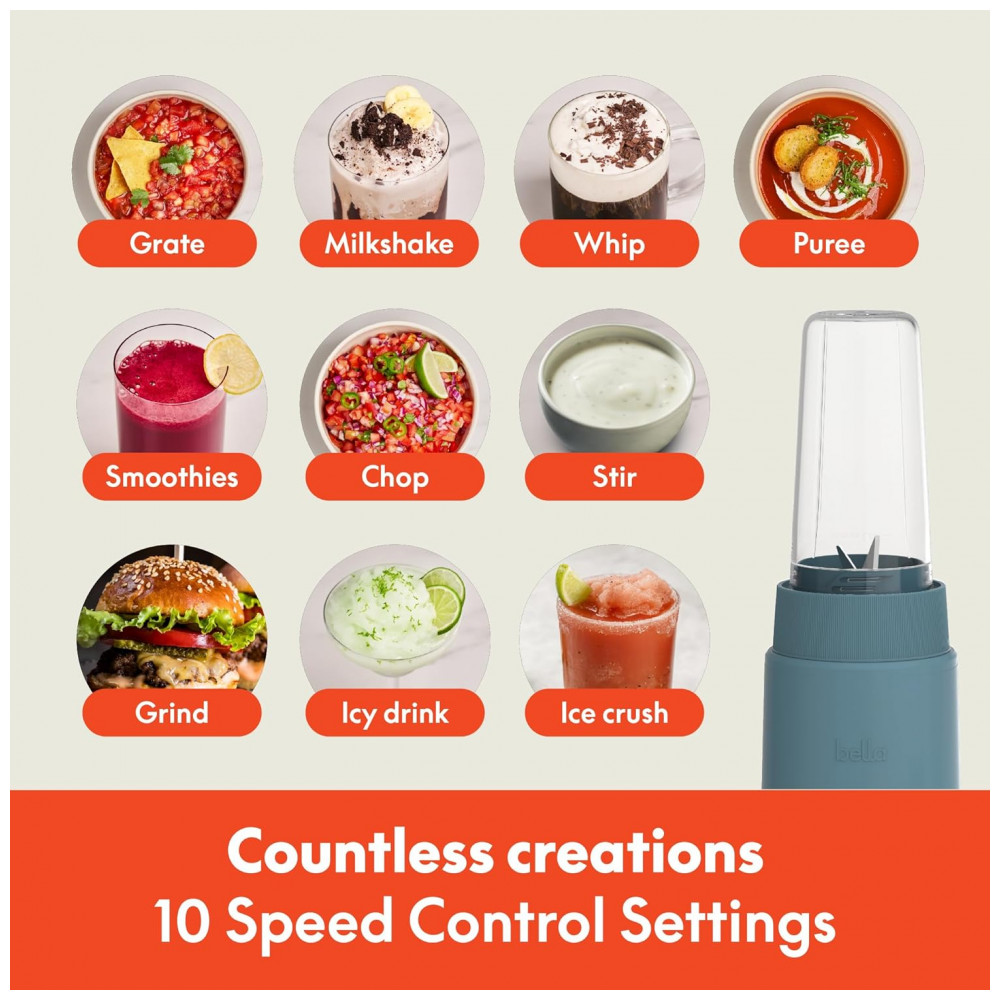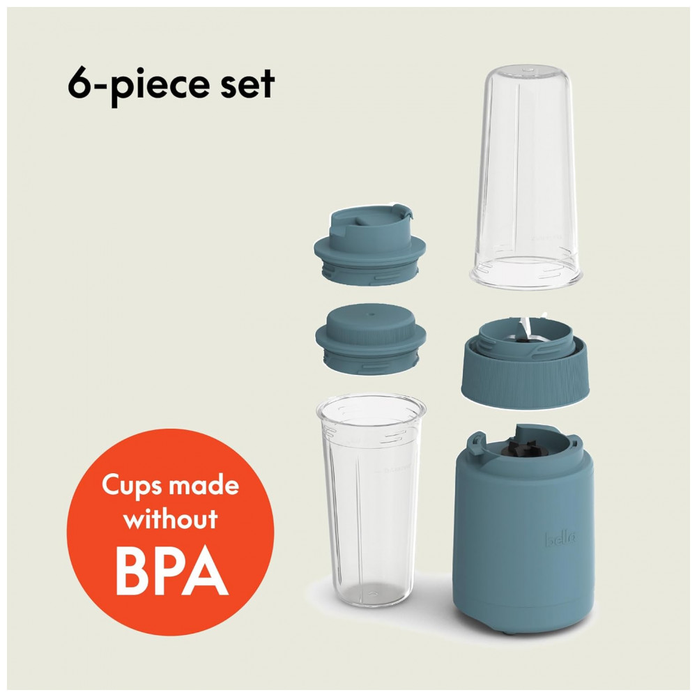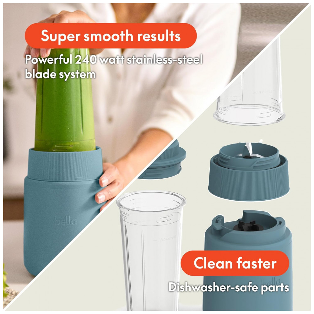 BELLA Rocket Blender Boost 6 Peças Liquidificador Portátil 240W 2 Copos 400ml Lâmina 4 Pontas Aço Inox Design Press Twist – Cor Surf