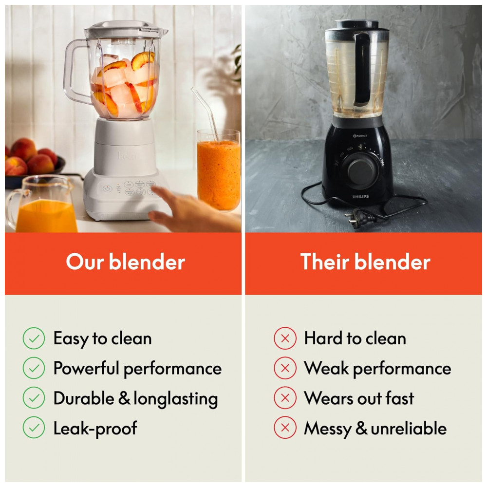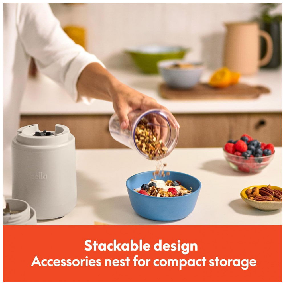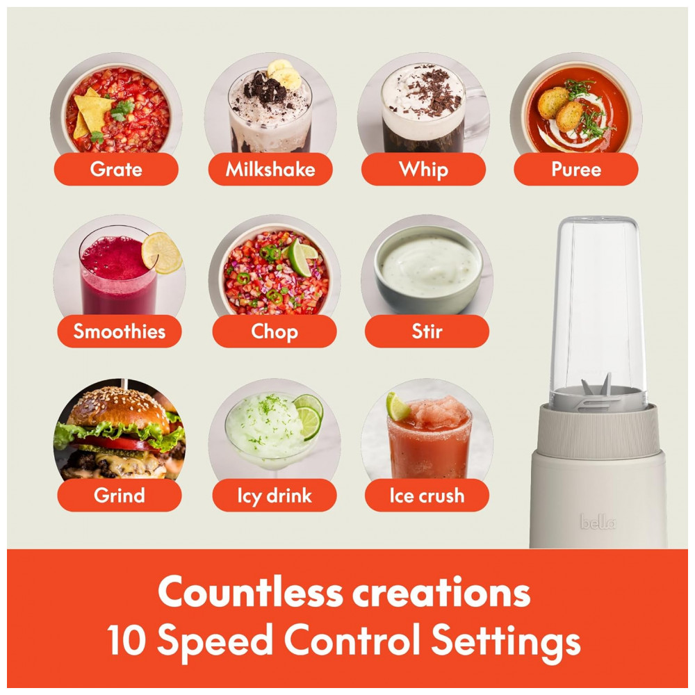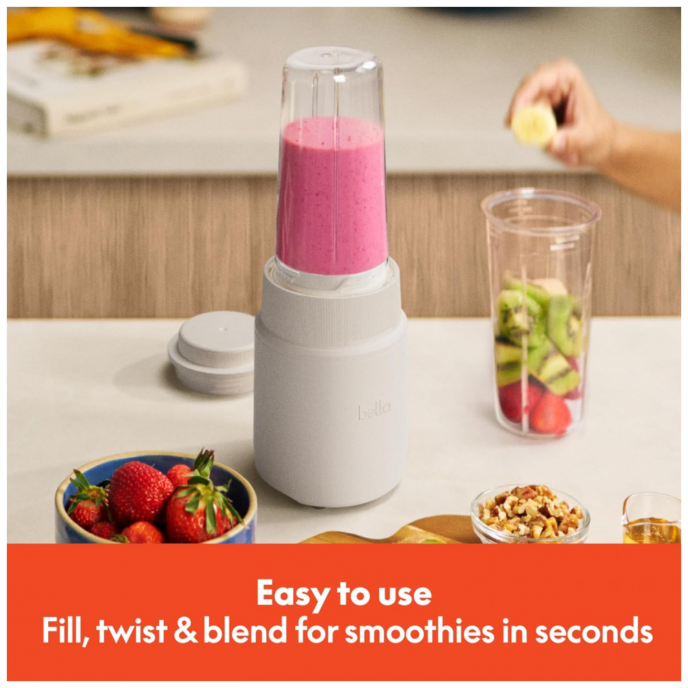 Conheça o BELLA Rocket Blender Boost, o liquidificador portátil elegante e fácil de usar que transforma sua cozinha em um centro criativo. Com um simples pressionar e girar, você pode preparar smoothies, molhos e salsas de forma rápida e prática, tudo isso graças ao potente motor de 240 watts e à afiada lâmina de aço inoxidável com 4 pontas. Desenvolvido para facilitar sua rotina e trazer mais cor e sabor aos seus dias, este mini liquidificador é a ferramenta ideal para inspirar suas aventuras culinárias. Seja para criar um café da manhã nutritivo com smoothies, um molho cremoso ou uma salsa saborosa para seus encontros, este mixer elétrico está pronto para o desafio. Seu design moderno apresenta cinco cores exclusivas BELLA — Oatmilk, Surf, Plum, Blossom e Seaglass — que adicionam um toque contemporâneo à sua cozinha. Além de potente e estiloso, é extremamente conveniente. O conjunto de seis peças inclui tudo o que você precisa: base para mistura, lâmina emulsificante, dois copos de 400 ml livres de BPA, tampa para armazenamento e tampa para viagem — perfeito para preparar e levar suas receitas para onde quiser. A limpeza é simples, pois os copos, tampas e lâminas são seguros para lavadora de louças. O compartimento para enrolar o cabo na base mantém sua bancada organizada e sem bagunça. Seja como presente para um entusiasta fitness, um companheiro portátil para viagens ou um toque sofisticado na sua cozinha, o BELLA Rocket Blender Boost torna o preparo de bebidas divertido, fácil e extremamente prático. Benefícios principais: Poderoso motor de 240W com lâmina inox 4 pontas para triturar gelo, sementes e frutas congeladas rapidamente, garantindo misturas suaves e homogêneas; Operação rápida e intuitiva em 3 passos — preencha, pressione e gire — ideal para manhãs corridas ou para quem está sempre em movimento; Copos de 400 ml portáteis e livres de BPA com tampas para transportar; Design empilhável que economiza espaço e mantém sua cozinha organizada; Fácil limpeza com peças próprias para lava-louças e base e lâmina que podem ser limpas com um pano, para que você aproveite mais tempo saboreando suas receitas.