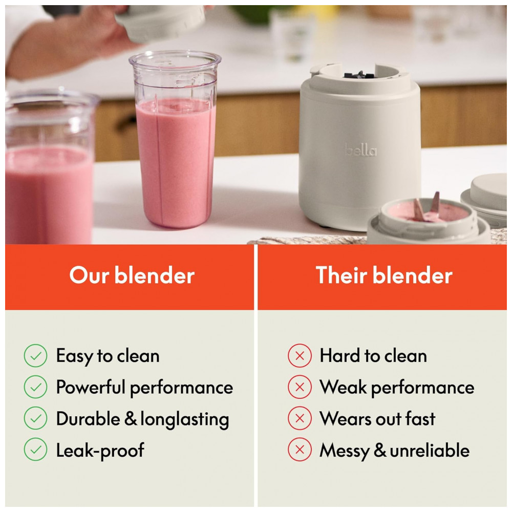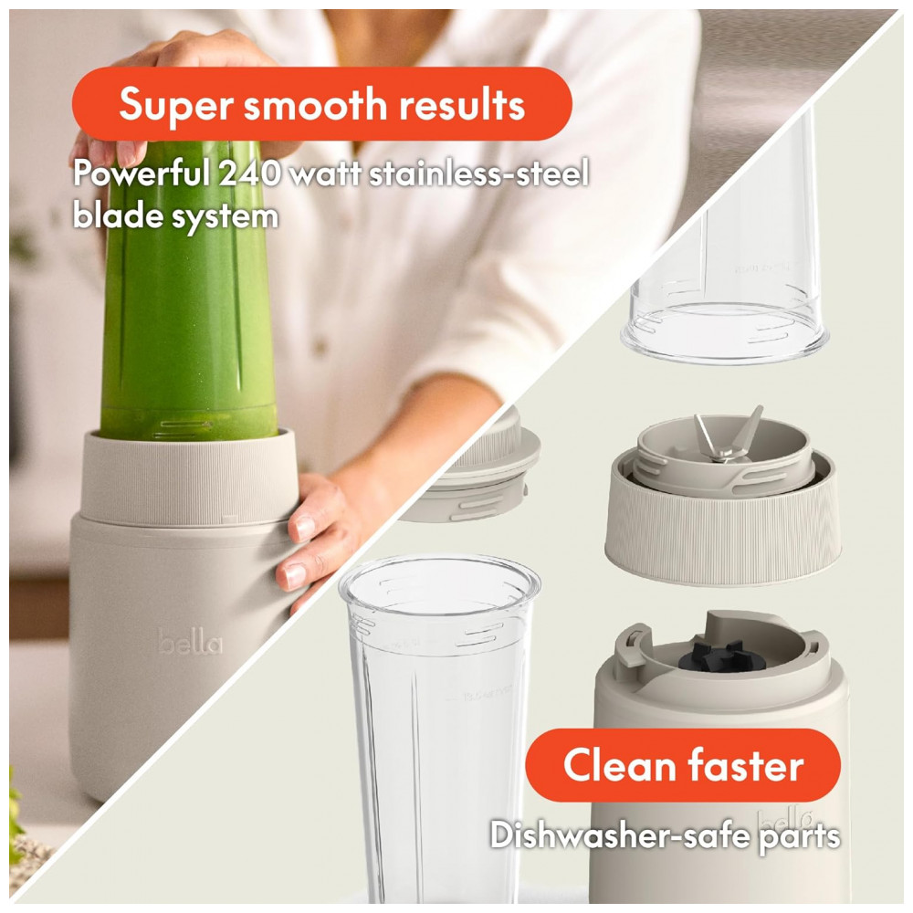BELLA Rocket Blender Boost 6 Peças Liquidificador Portátil 240W Lâmina Inox 4 Pontas Copos BPA Free 400ml