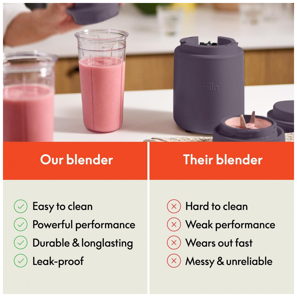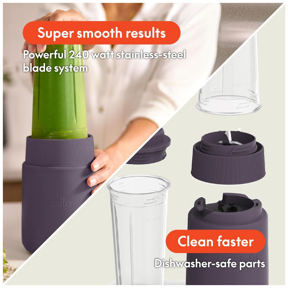 BELLA Rocket Blender Boost 6 Peças Liquidificador Portátil com Motor 240W Aço Inoxidável Livres de BPA Design Compacto e Prático