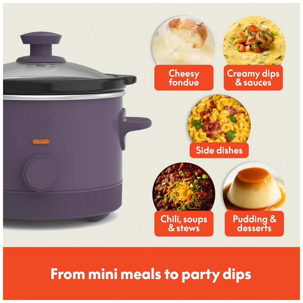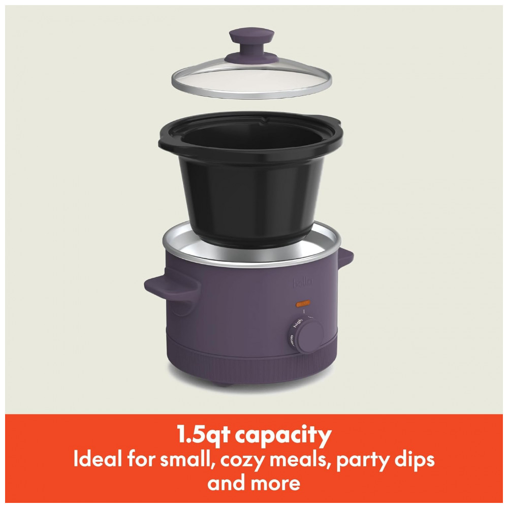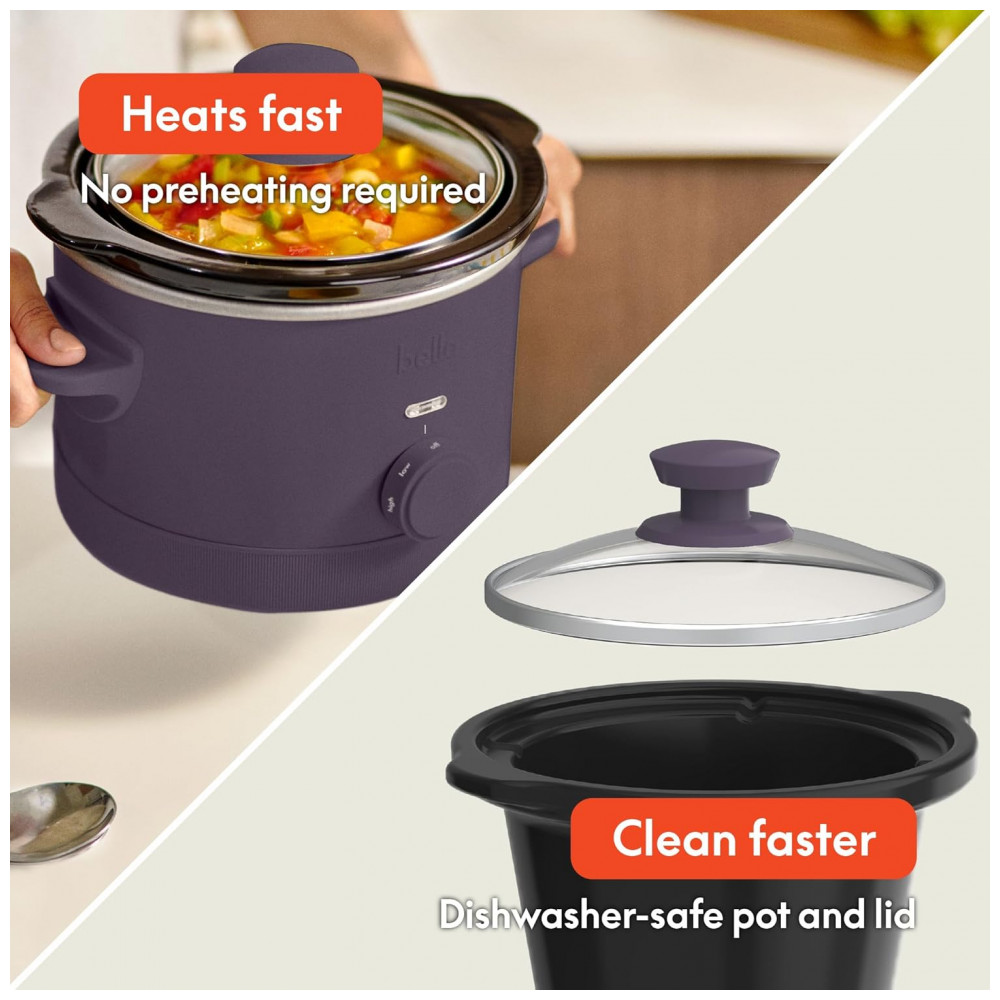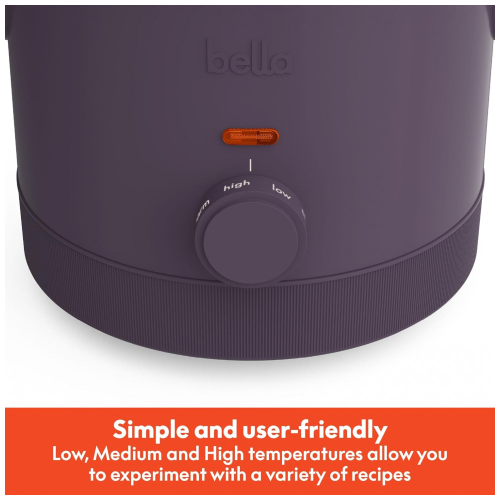 BELLA Slow Cooker 14 L com 3 Temperaturas Revestimento Cerâmico Antiaderente e Tampa de Vidro Temperado Cor Ameixa