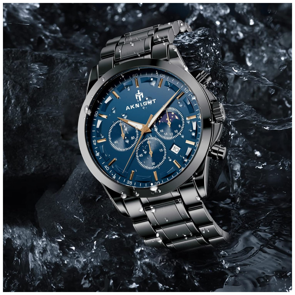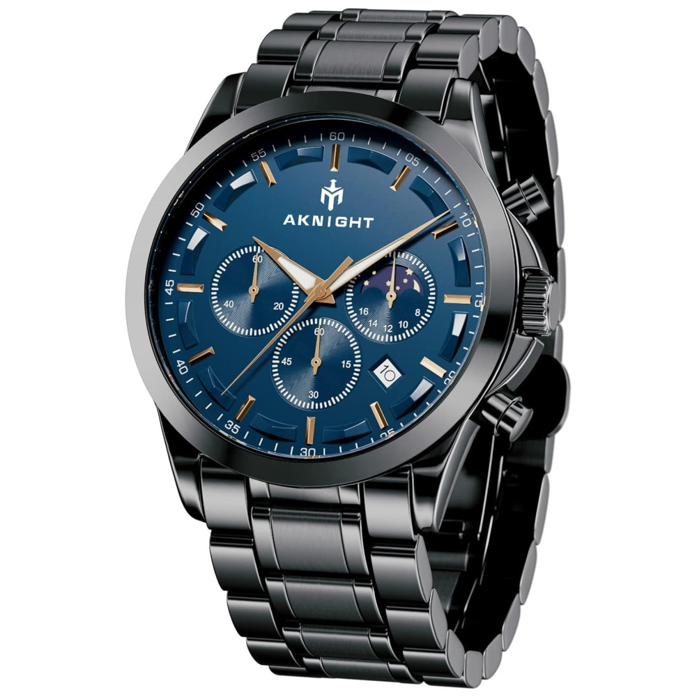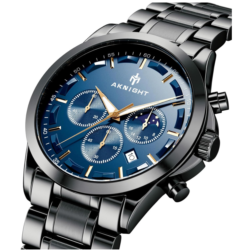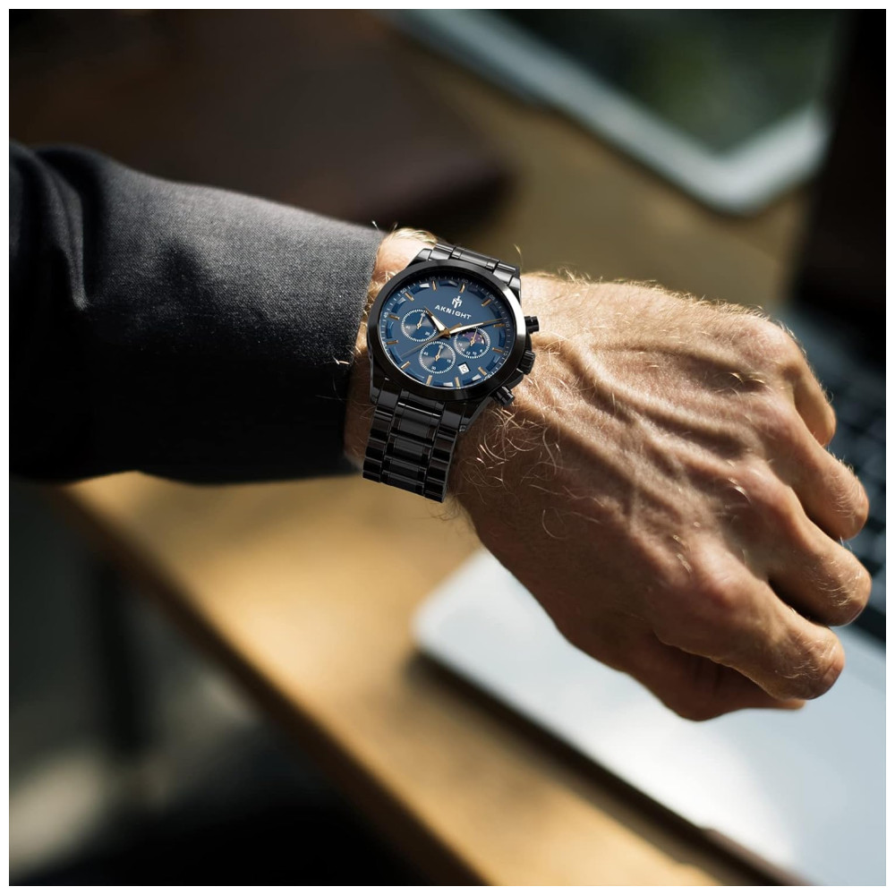 RELÓGIOS DE QUALIDADE 100 PREMIUM Estamos fornecendo relógios clássicos para homens com movimento de quartzo de qualidade premium 100. Nossos relógios são incrivelmente duráveis e podem durar toda a vida quando mantidos adequadamente. Relógio cronógrafo multifuncional com três submostradores para segundos, minutos e horas.