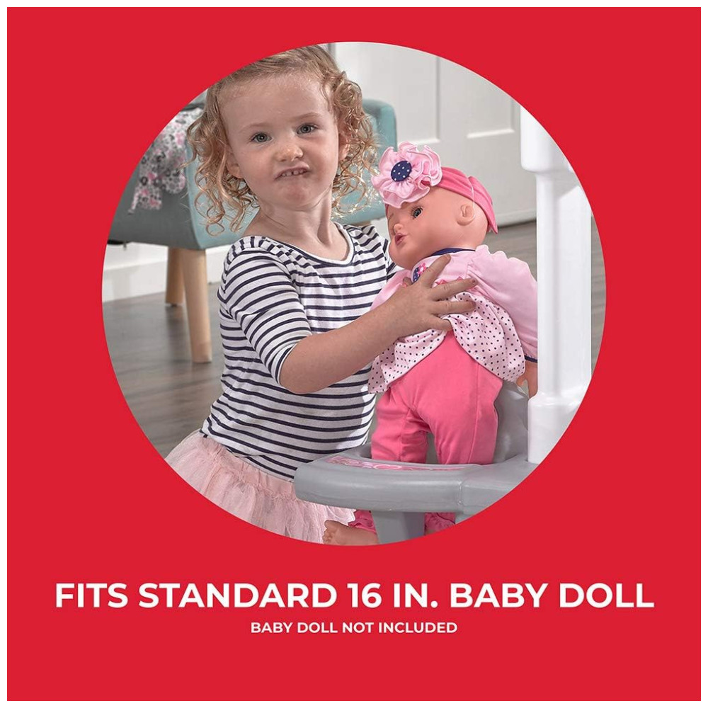 O conjunto de bonecas de berçário Step2 Love and Care Deluxe é um brinquedo interativo e resistente, projetado para estimular a imaginação e os instintos amorosos das crianças. O conjunto inclui uma cozinha de mentira, um berço que se transforma em trocador com um móbile encantador, uma cadeira alta para alimentação, uma pia e uma máquina de lavar roupas. Além disso, há caixas de armazenamento, prateleiras e armários para manter os acessórios de boneca organizados. O conjunto é fácil de montar seguindo as instruções simples e é feito de plástico de parede dupla resistente às cores brilhantes que não lascam, desbotam, racham ou descascam. A casa de jogos compacta economiza espaço e é fácil de limpar com lenços desinfetantes ou produtos de limpeza domésticos. O conjunto de bonecas de berçário Step2 Love and Care Deluxe é o companheiro ideal para horas de diversão envolvente e desenvolvimento de habilidades sociais em crianças. Observe seu filho se envolver em cenários de dramatização realistas, enquanto cuida de suas bonecas de bebê conjunto não incluído .