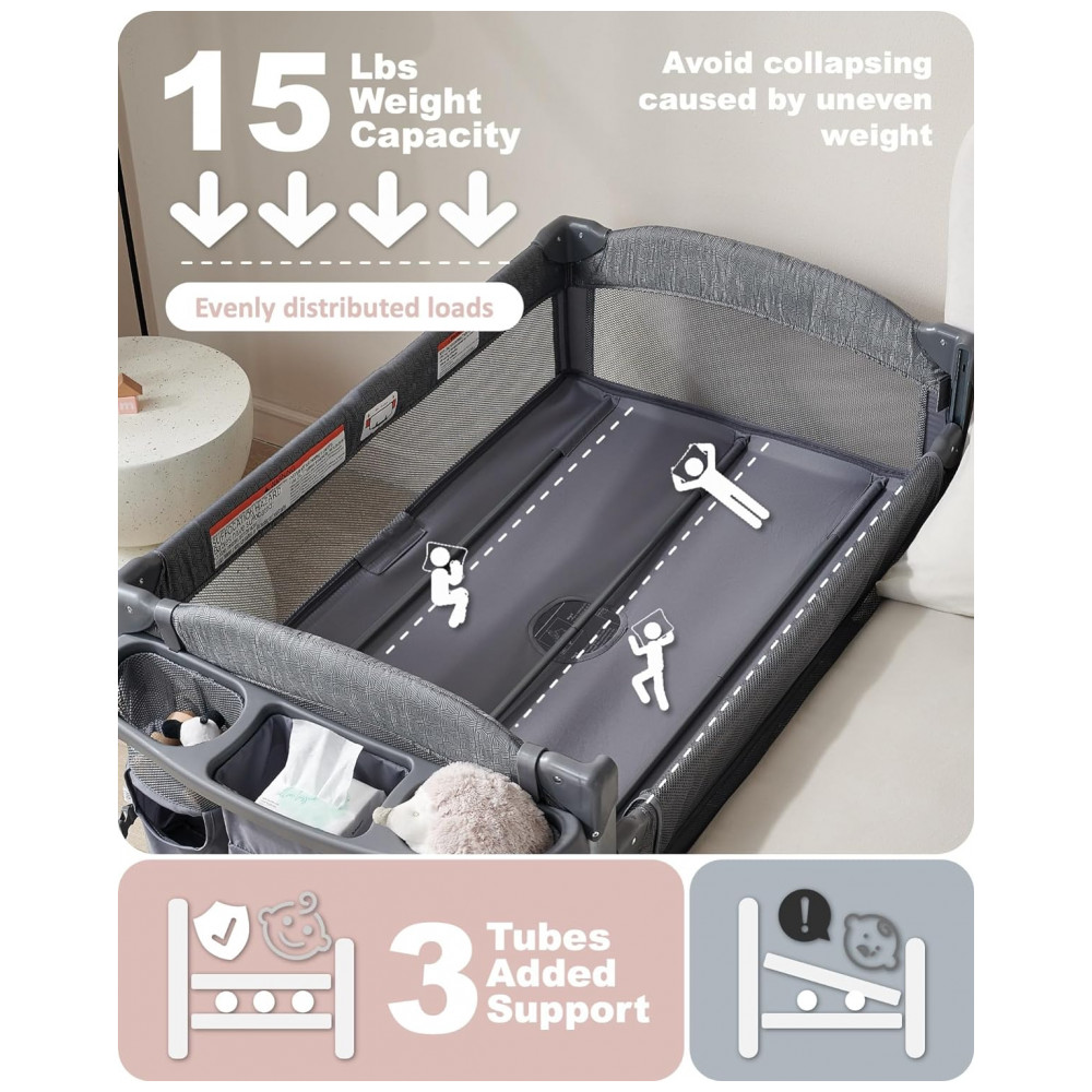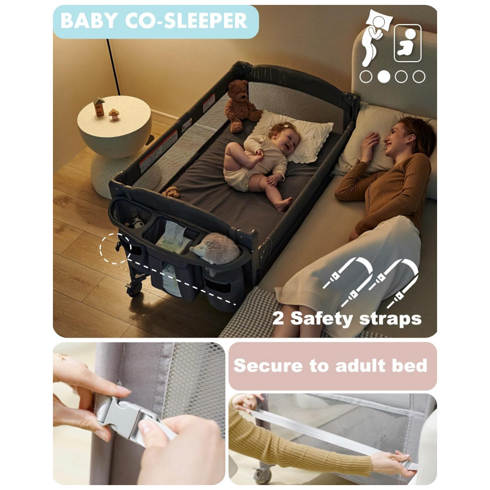 O berço de cabeceira AirClub baby 4 em 1 apresenta recursos geniais tudo em um. A função de berço de cabeceira proporciona ao bebê o conforto necessário para um sono tranquilo o trocador portátil facilita a troca de fraldas para a família recém nascida a função de berço e playard oferece um local para o bebê dormir e brincar.