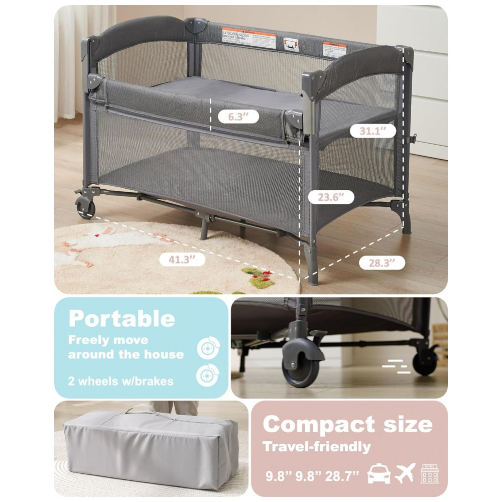 Com uma rápida remoção da camada do berço, o berço de cabeceira para bebê AirClub pode se transformar em um Playard para bebês 13 kg ou espaço de zenamento para brinquedos e equipamentos para bebês. Os berços conversíveis 4 em 1 são ideais para recém nascidos de até 13 kg
