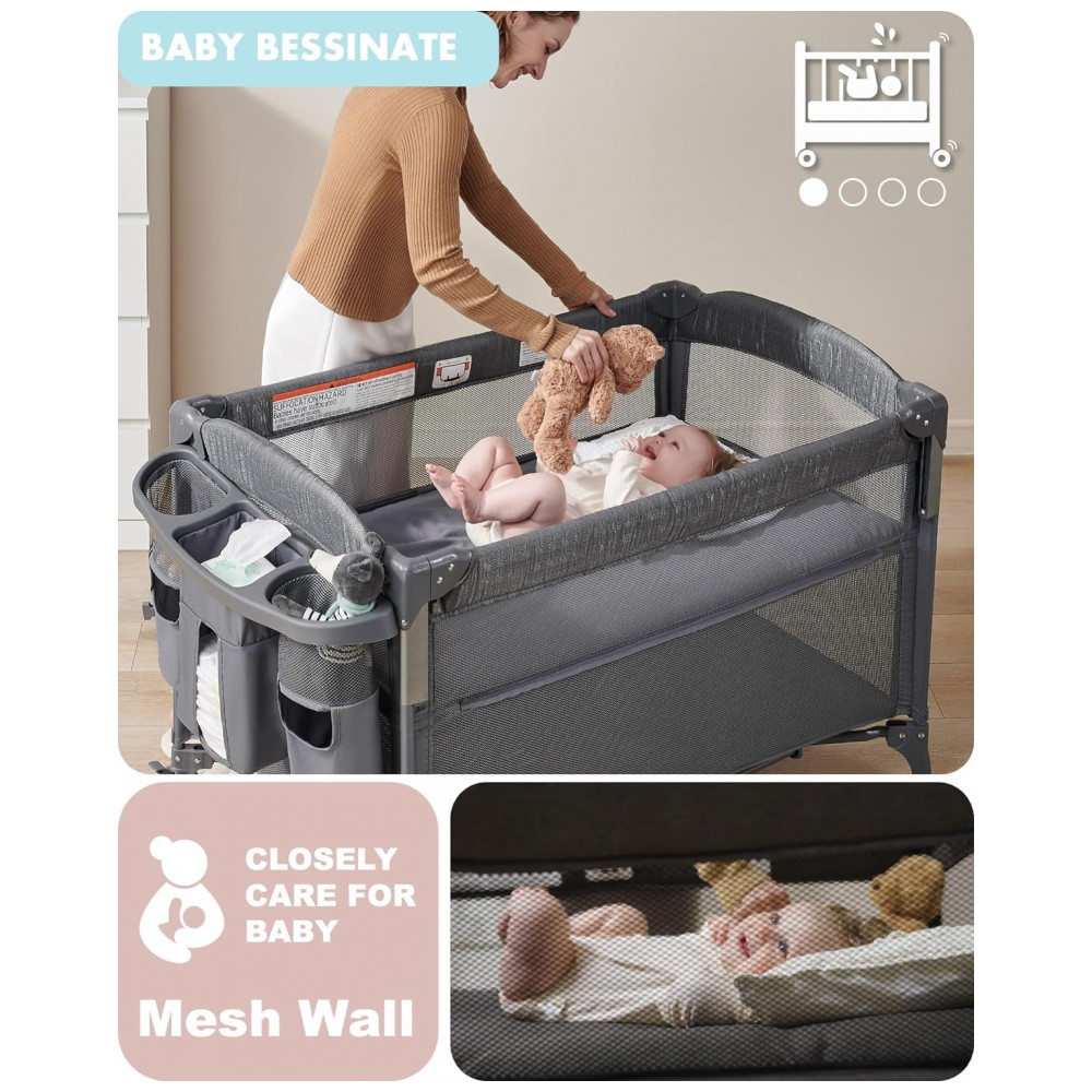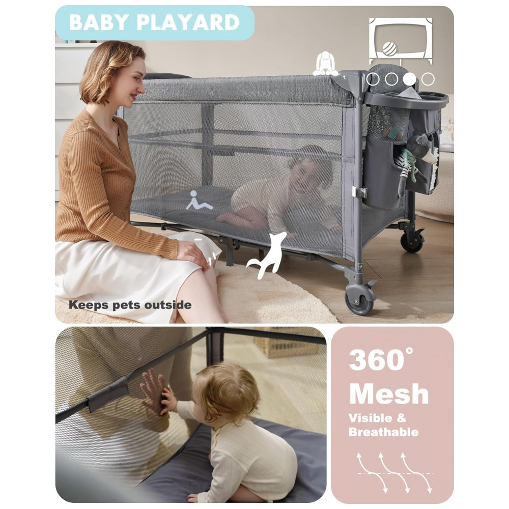 Berço Cercado Portátil 4 em 1 com Trocador AirClub Cinza Escuro