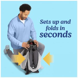 A dobra do botão exclusivo da Graco torna o fechamento do seu playard rápido e sem complicações.