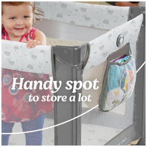 Mantenha seu filho feliz e confortável, não importa onde você vá com o Graco Pack n Play On the Go Playard. Um berço de tamanho grande, removível e especialmente feito, dobra se com o playard para uma configuração rápida e menos peças para transportar.