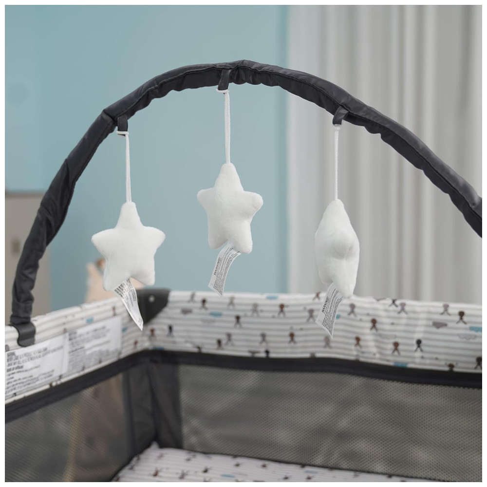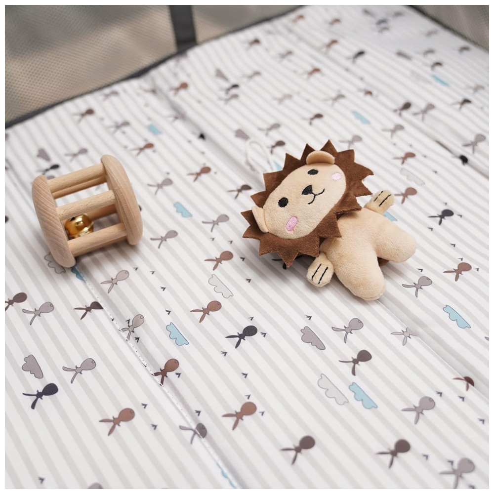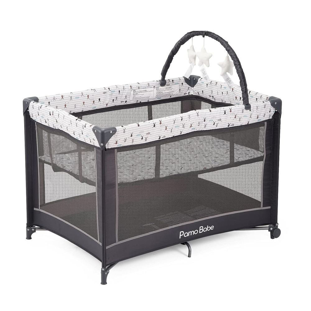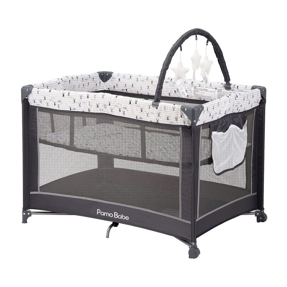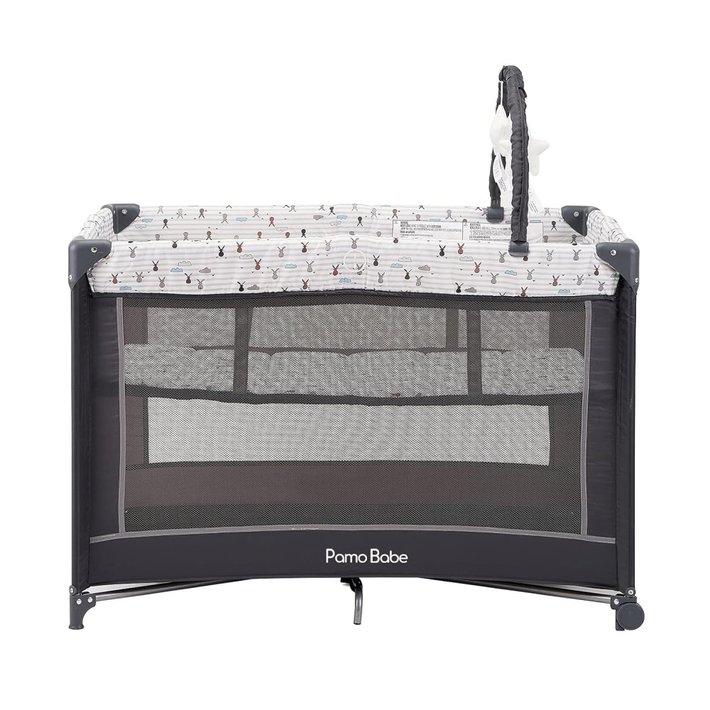 Berço Cercado Portátil com Colchão e Barra de Brinquedo Pamo Babe Cinza