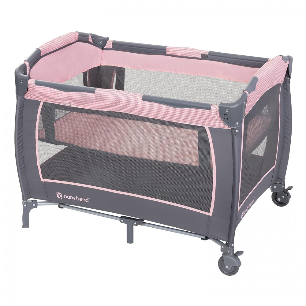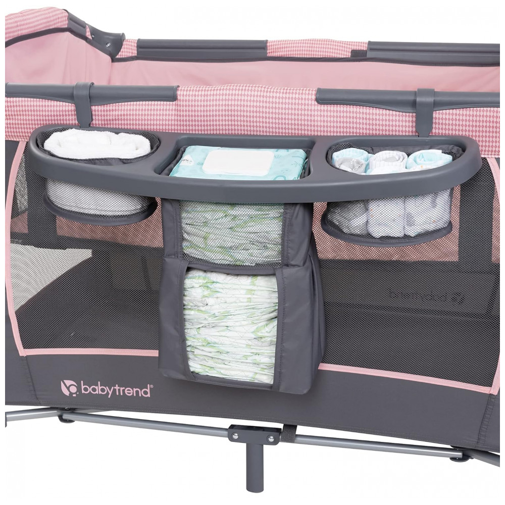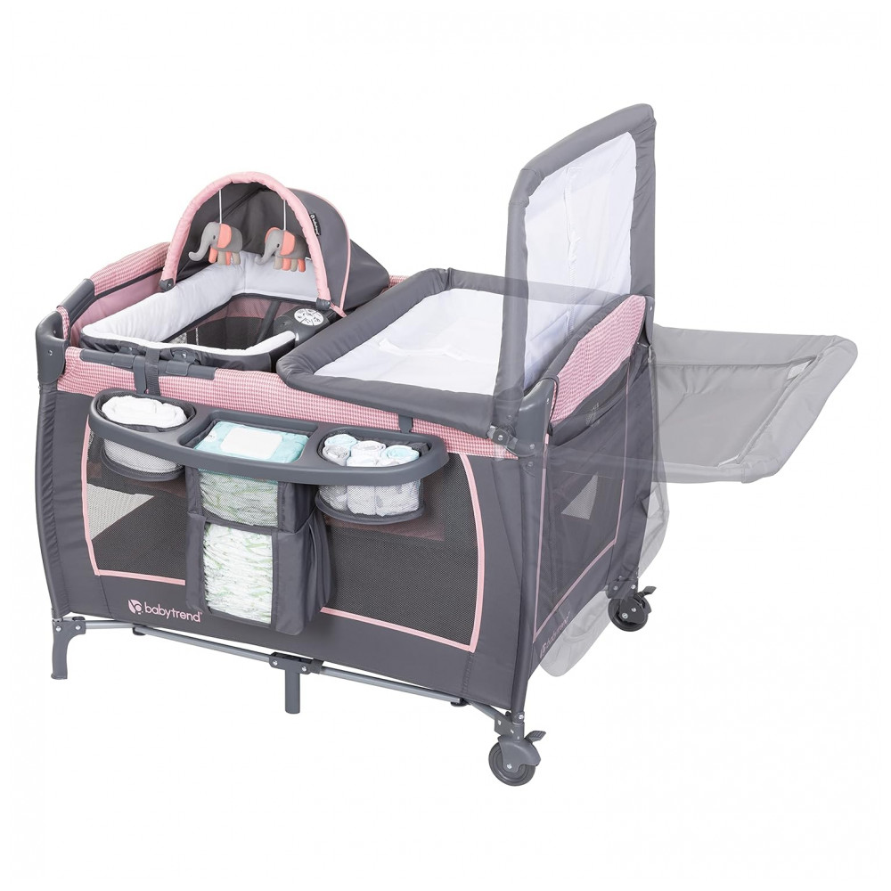 Berço Cercado Portátil com Controle de Volume Luz Noturna e Vibração Baby Trend Rosa