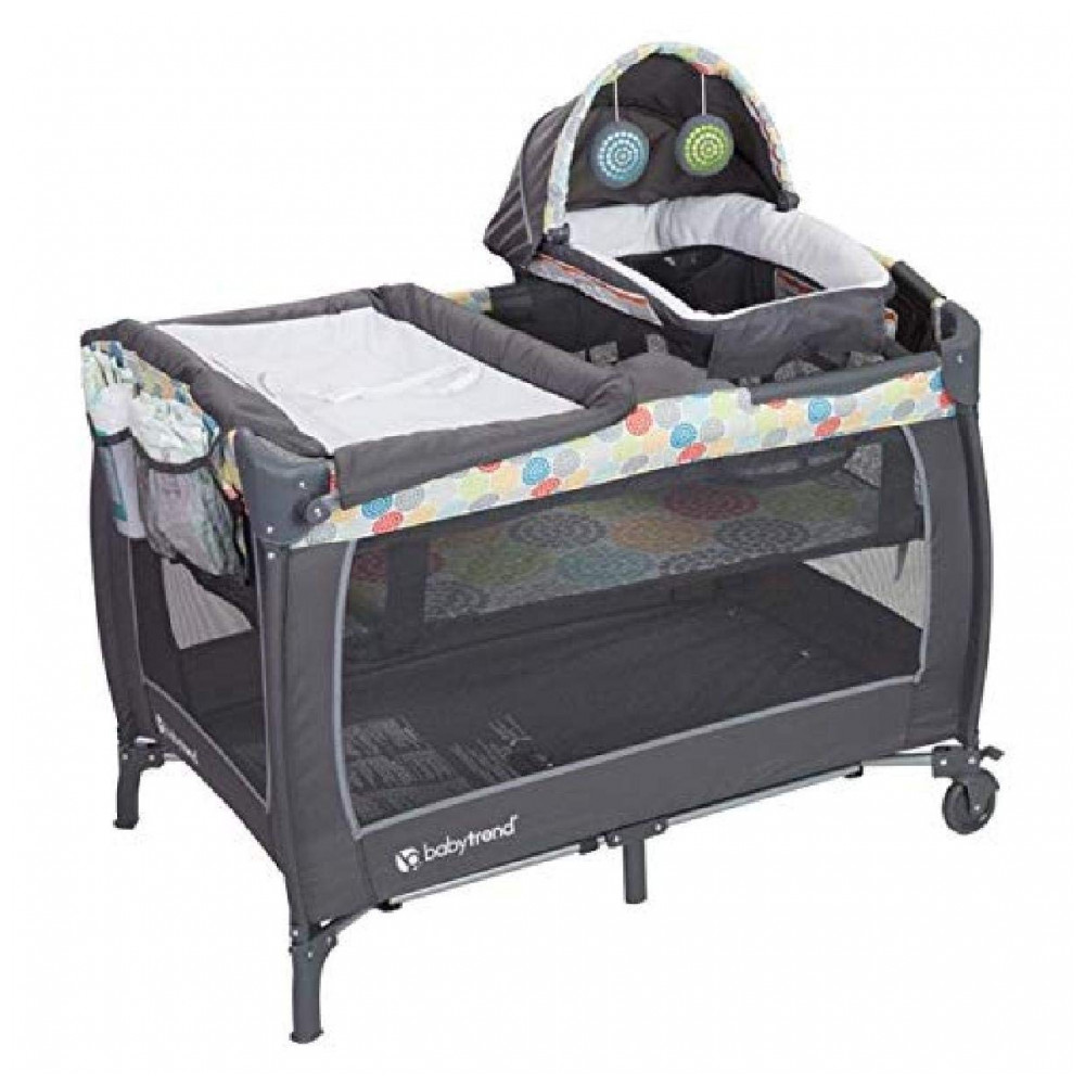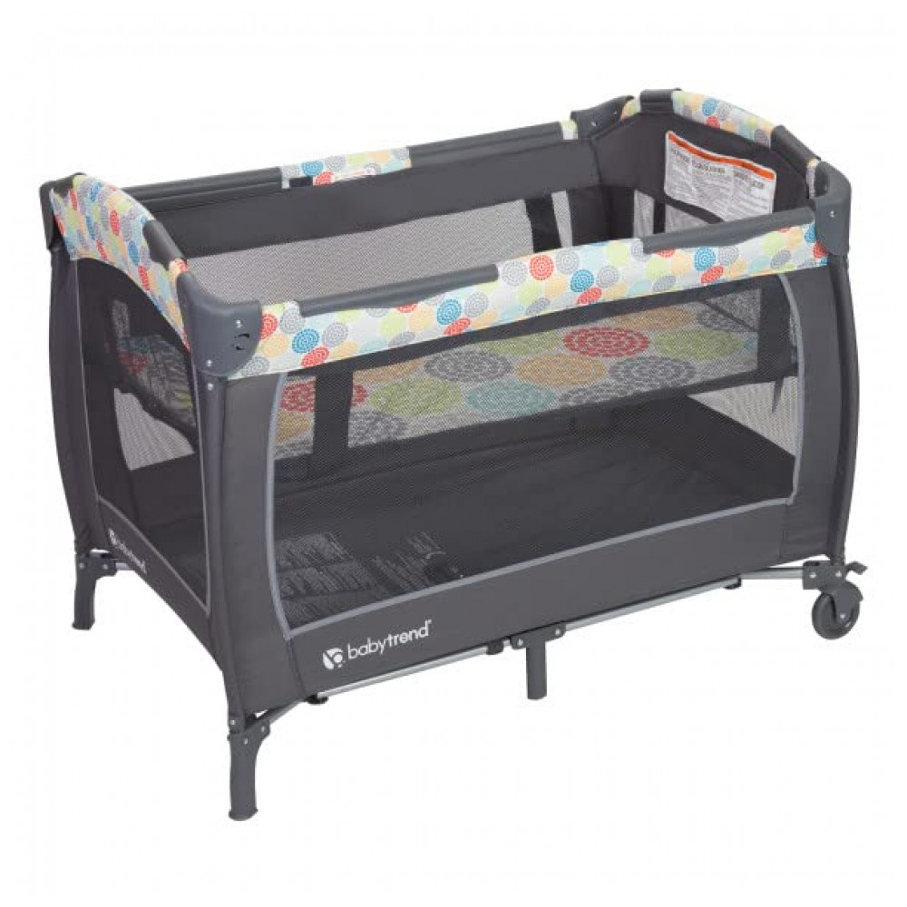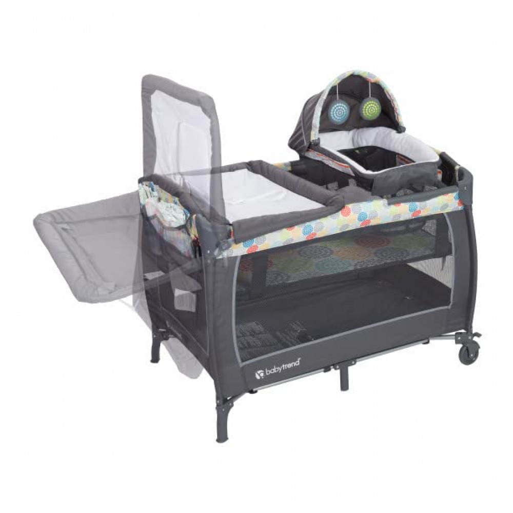 Berço Cercado Portátil com Dossel e 2 Brinquedos de Pelúcia Baby Trend Funfetti Preto