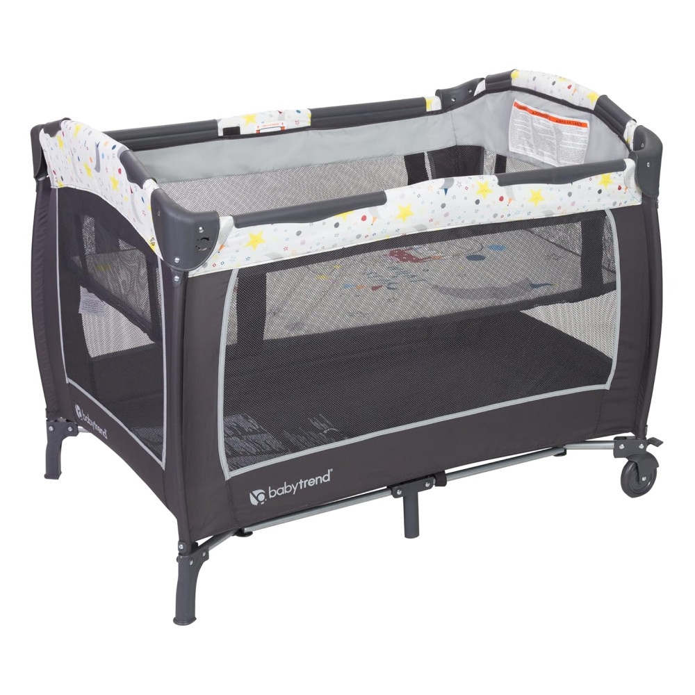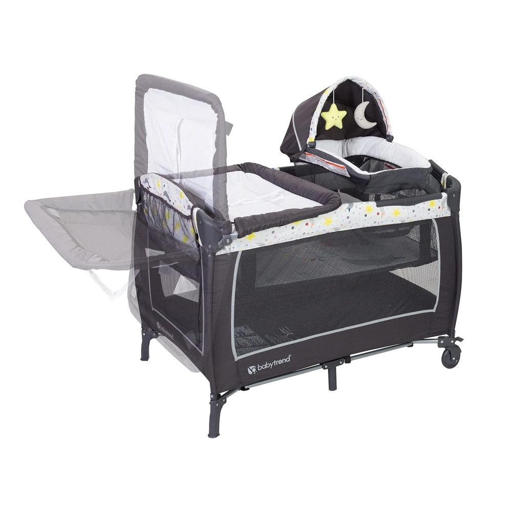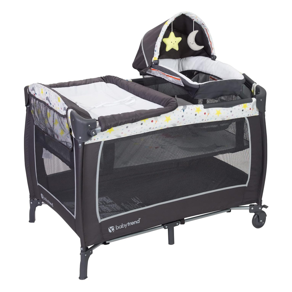 Berço Cercado Portátil com Dossel e 2 Brinquedos de Pelúcia Baby Trend Twinkle Twinkle Moon Preto