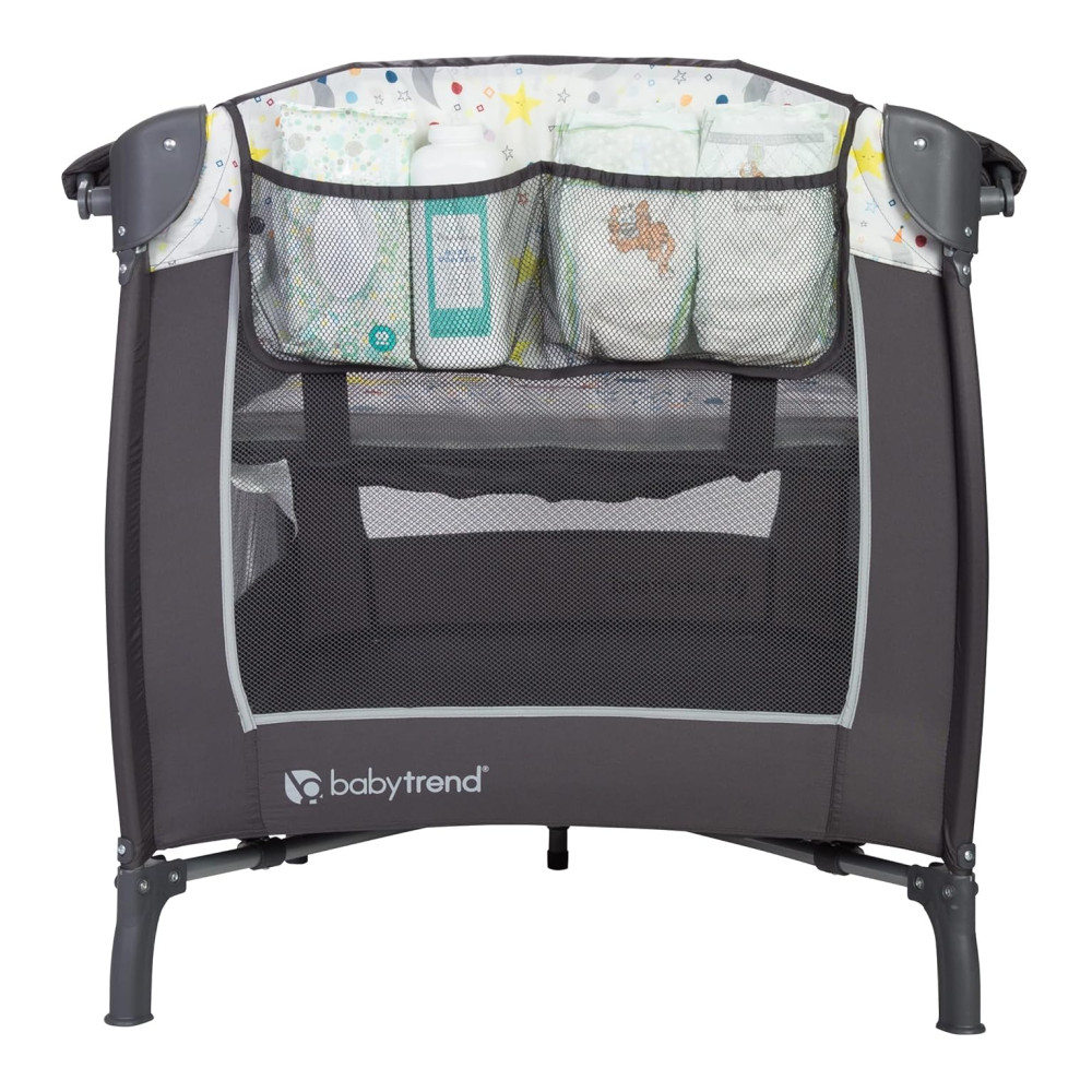 Seu filho vai se sentir confortável e no adorável Lil Creche Snooze Deluxe II da Baby Trend. O cochilo removível com dossel é perfeito para dormir um pouco ao longo do dia e os brinquedos pendurados os mantêm entretidos enquanto estão acordados. A hora de trocar as fraldas é muito fácil com o trocador dobrável e o bolso de zenamento para trocar itens essenciais. À medida que o seu bebé cresce, o berçário transforma se no centro ideal para brincar e as grandes rodas com travões proporcionam maior mobilidade e estabilidade. O Nursery Center dobra se de forma compacta e cabe facilmente na bolsa de viagem, zenamento incluída para portabilidade conveniente.