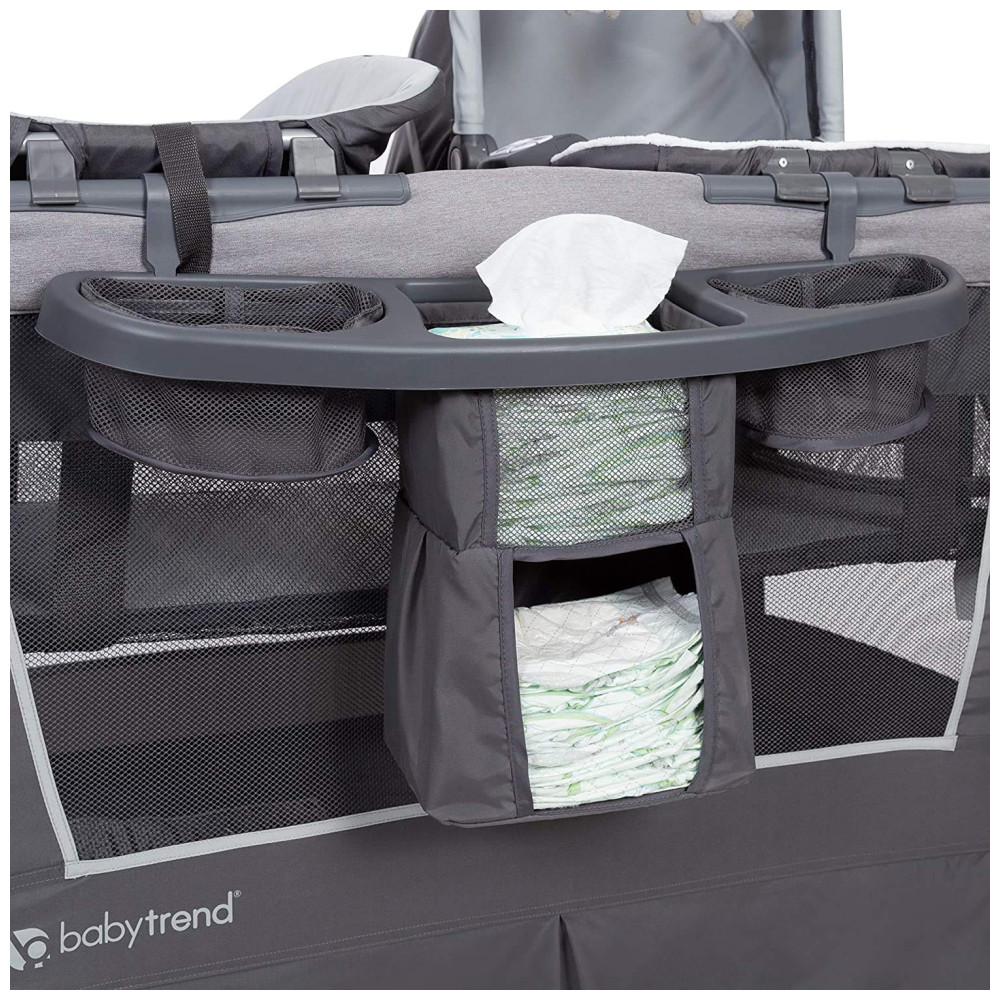 Berço Cercado Portátil com Freios Bolsa de Viagem Música e Luz Noturna Baby Trend Retreat Cinza