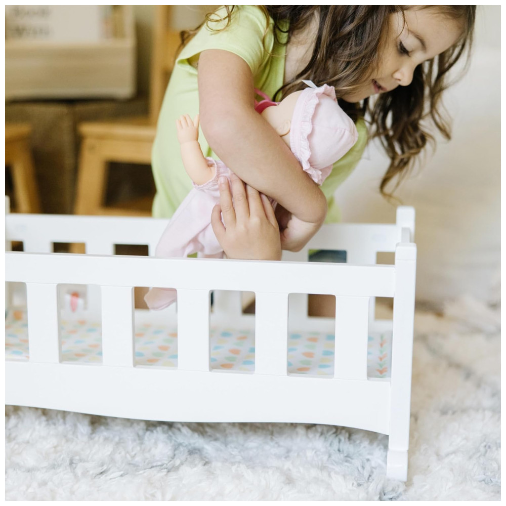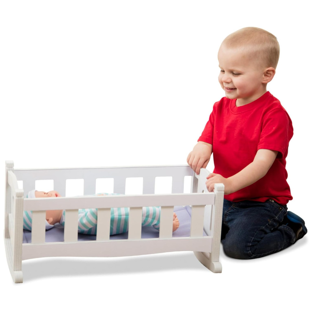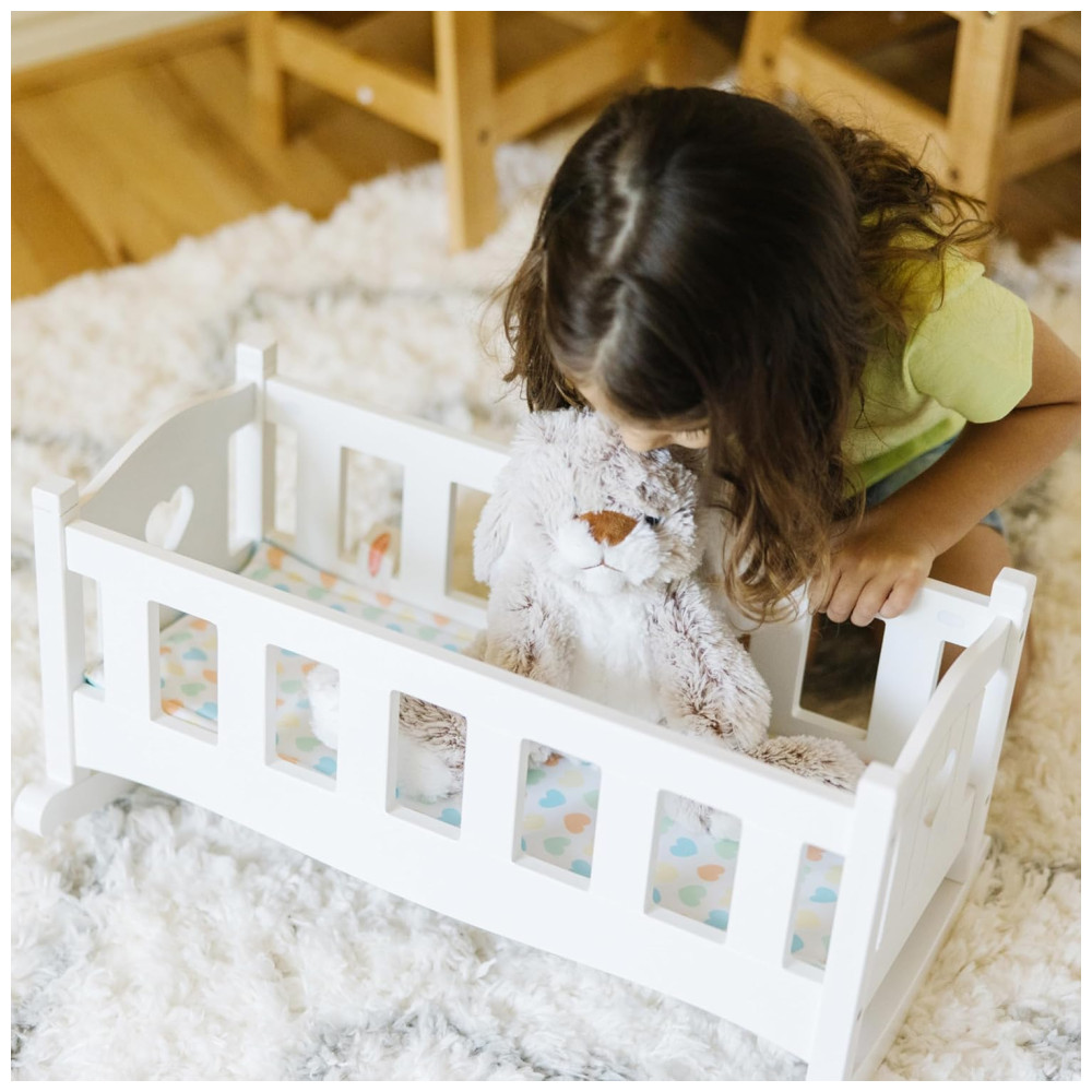 Berço de Madeira para Bonecas e Bichos de Pelúcia com até 50 cm para Crianças Acima de 3 Anos Melissa & Doug Branco
