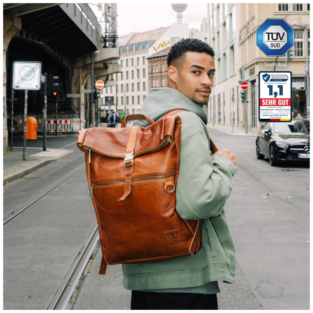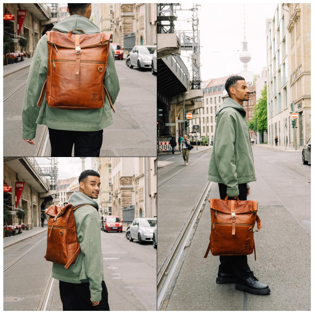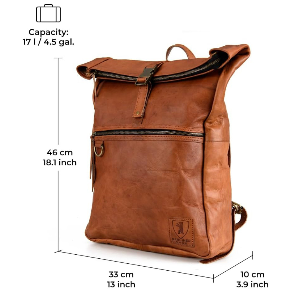 Berliner Bags Mochila Vintage de Couro Utrecht Grande Capacidade Impermeável