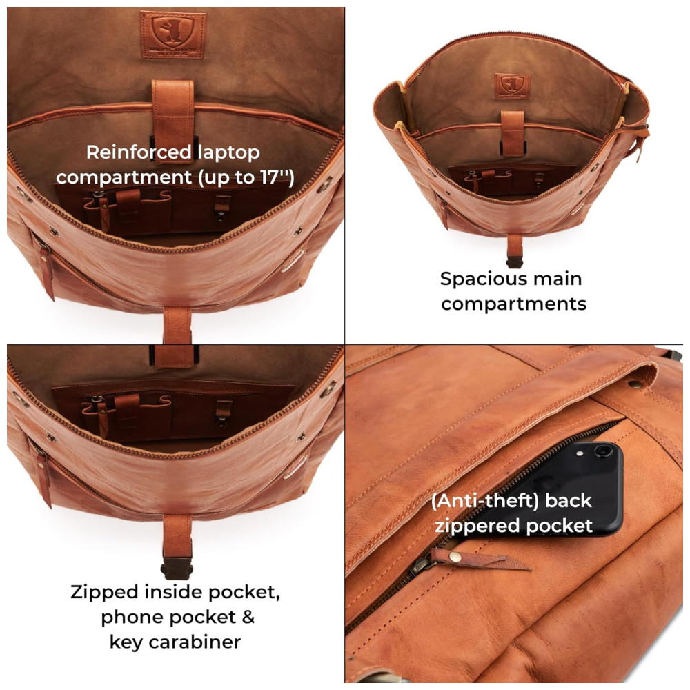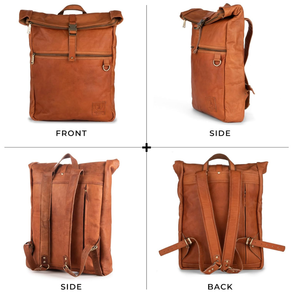 FEITO PARA DURAR. A mochila casual Utrecht é feita de couro 100 e forrada com algodão macio. O fechamento rolltop permite um volume de zenamento ajustável. As fivelas de metal de estilo vintage e zíperes de metal YKK de alta qualidade adicionam charme e durabilidade à nossa popular bolsa de ciclismo