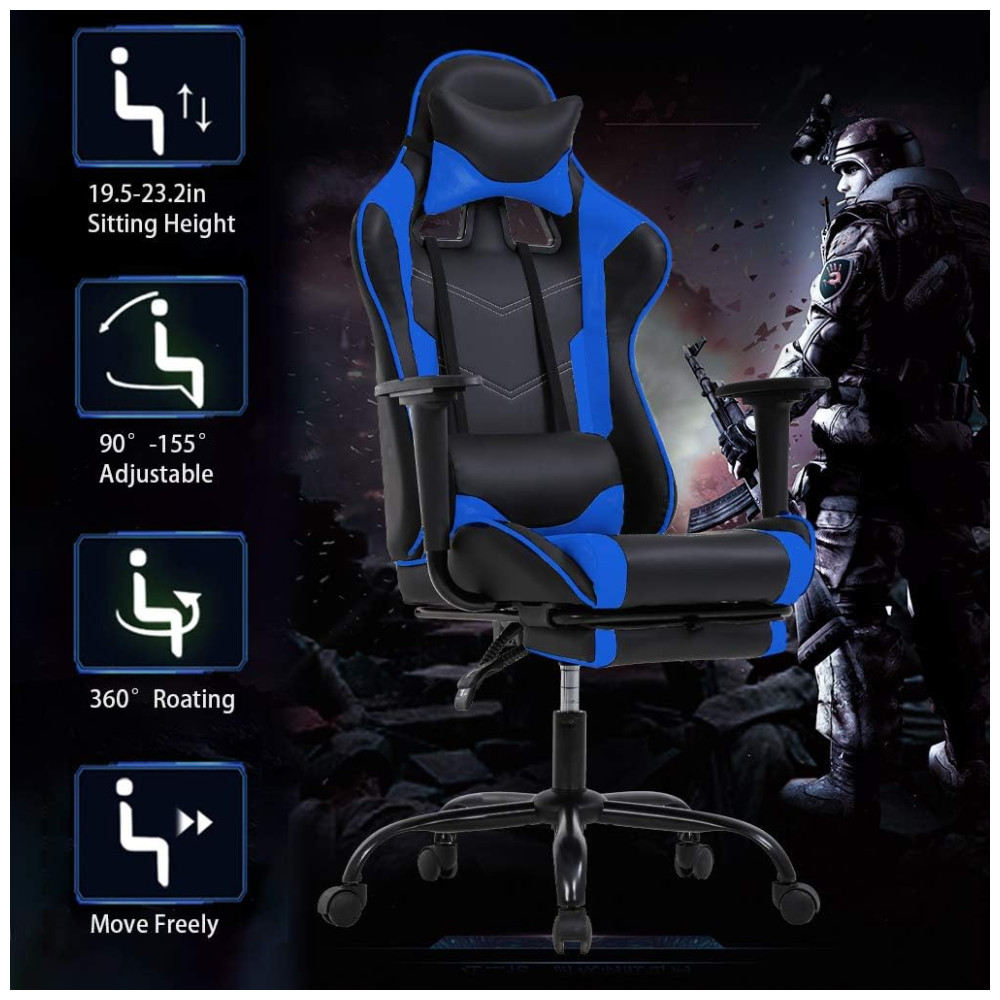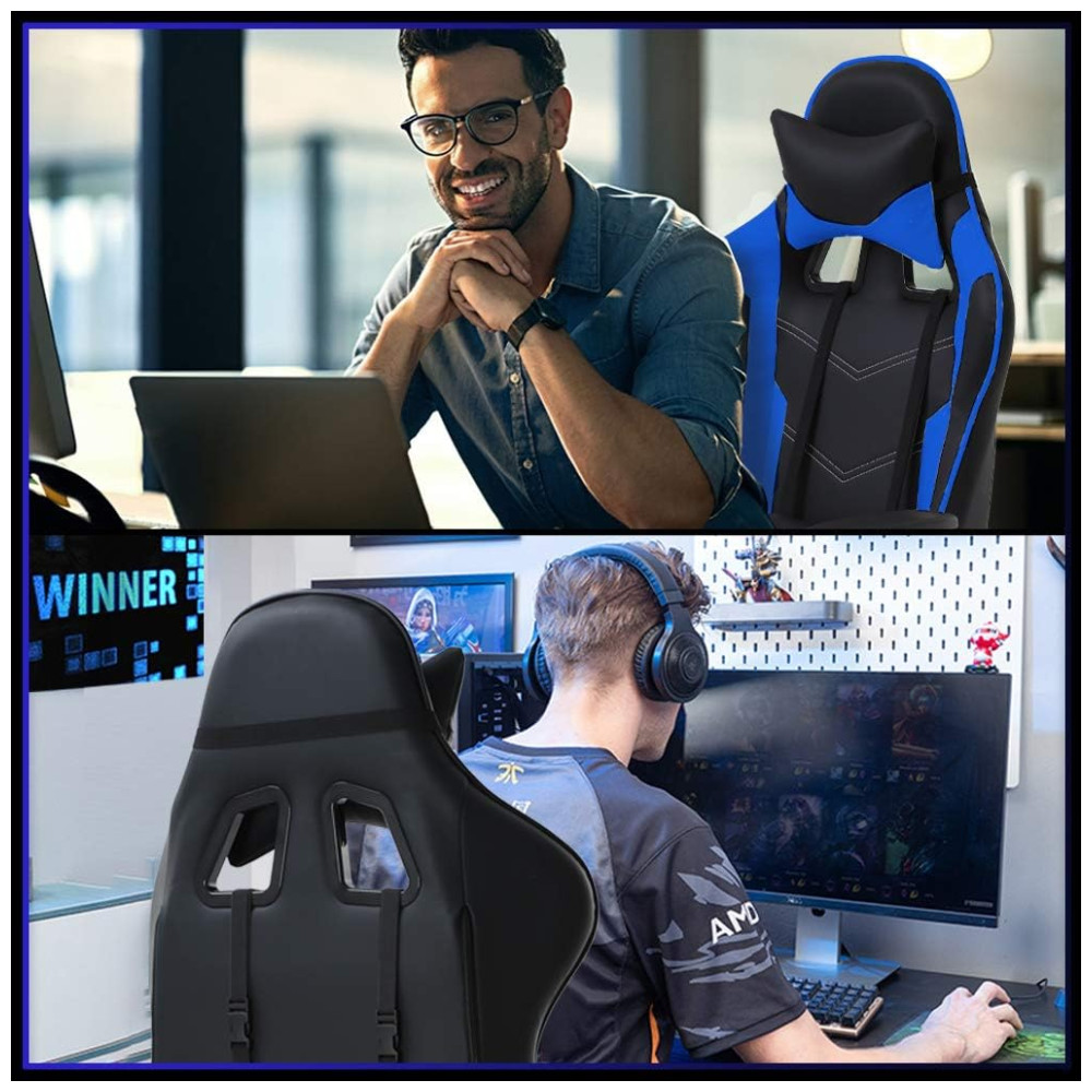 BestOffice Cadeira de Escritório Gamer Reclinável e Ergonômica com Apoio para Lombar Azul