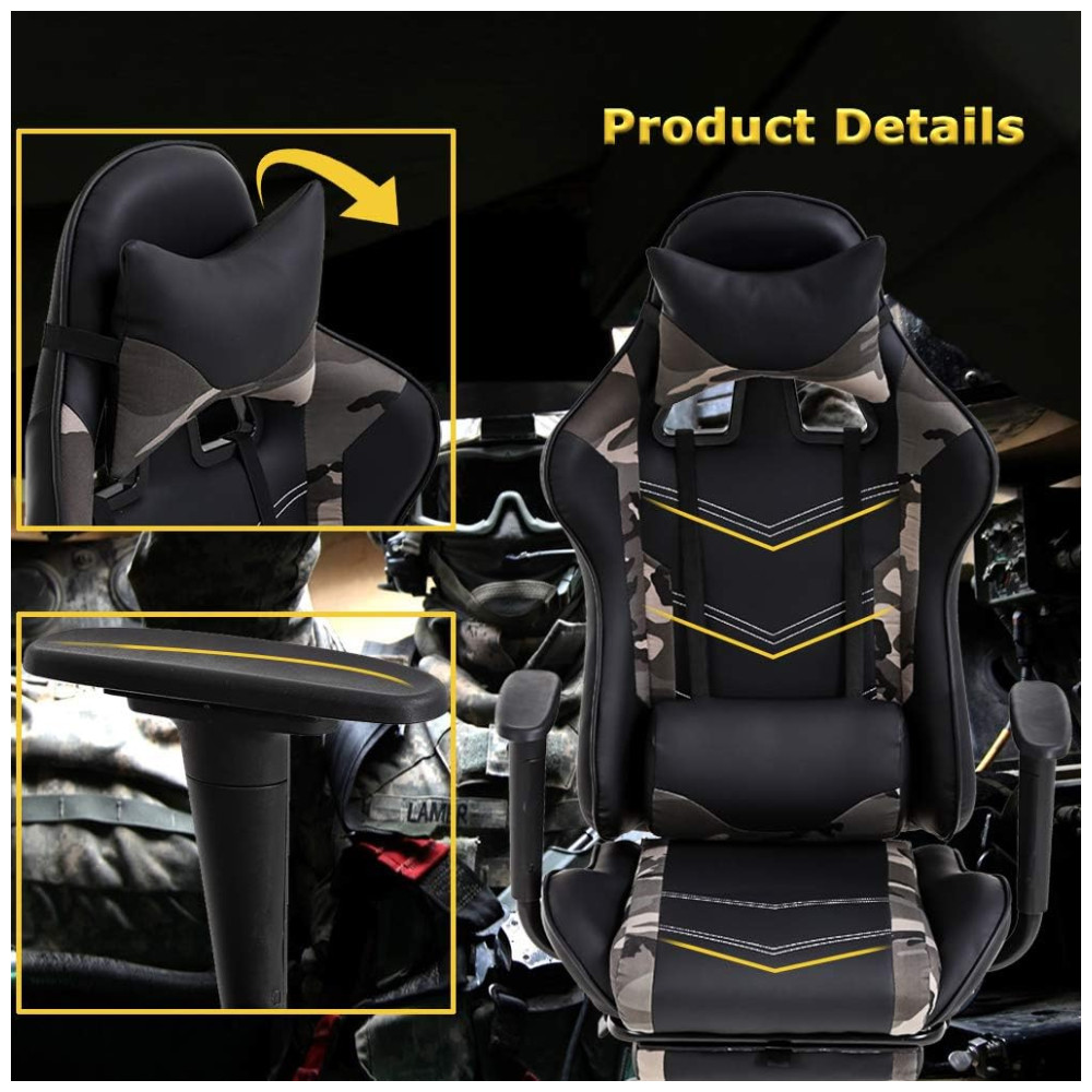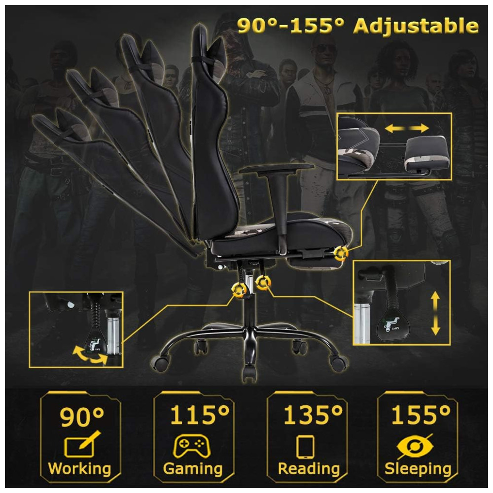 BestOffice Cadeira de Escritório Gamer Reclinável e Ergonômica com Apoio para Lombar Verde Camuflada