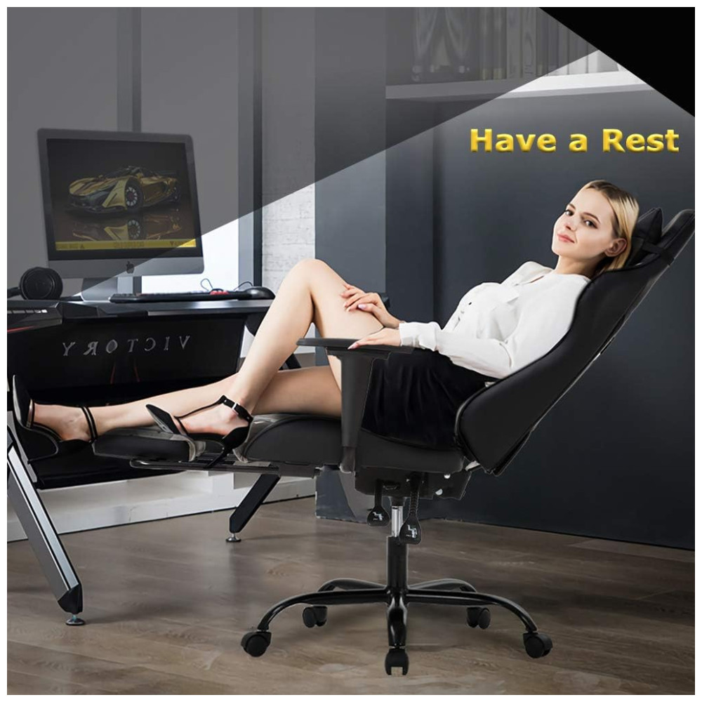 ASSENTO CONFORTÁVEL E MACIO COM APOIO PARA OS PÉS Apresentamos esta nova cadeira gaming com encosto alto com uma aparência única e uma cadeira de corrida com acolchoamento espesso para máximo conforto. A cadeira de escritório em couro PU sintético macio é um complemento perfeito para você no escritório, na sala de estudos e na sala de reuniões. Cadeira de corrida para jogos cadeira para escritório cadeira ajustável cadeira para mesa cadeira para computador.