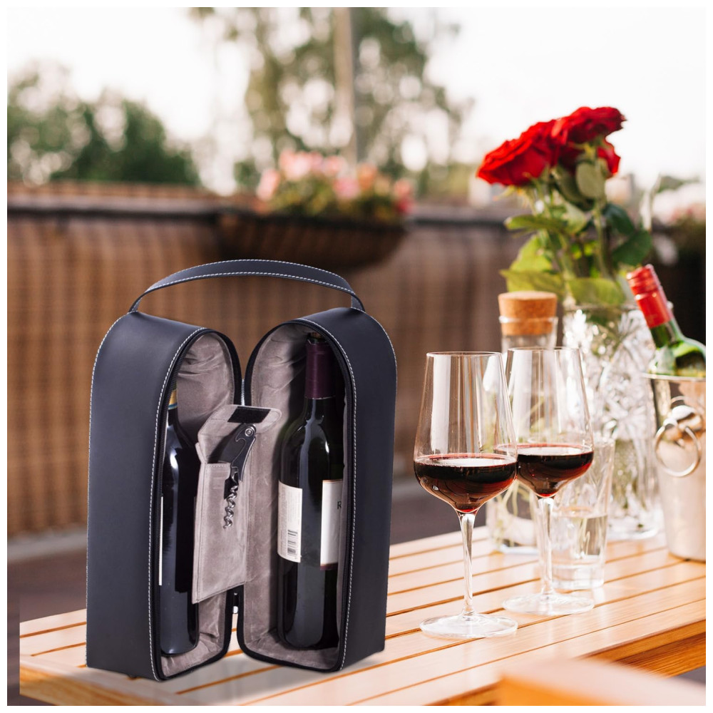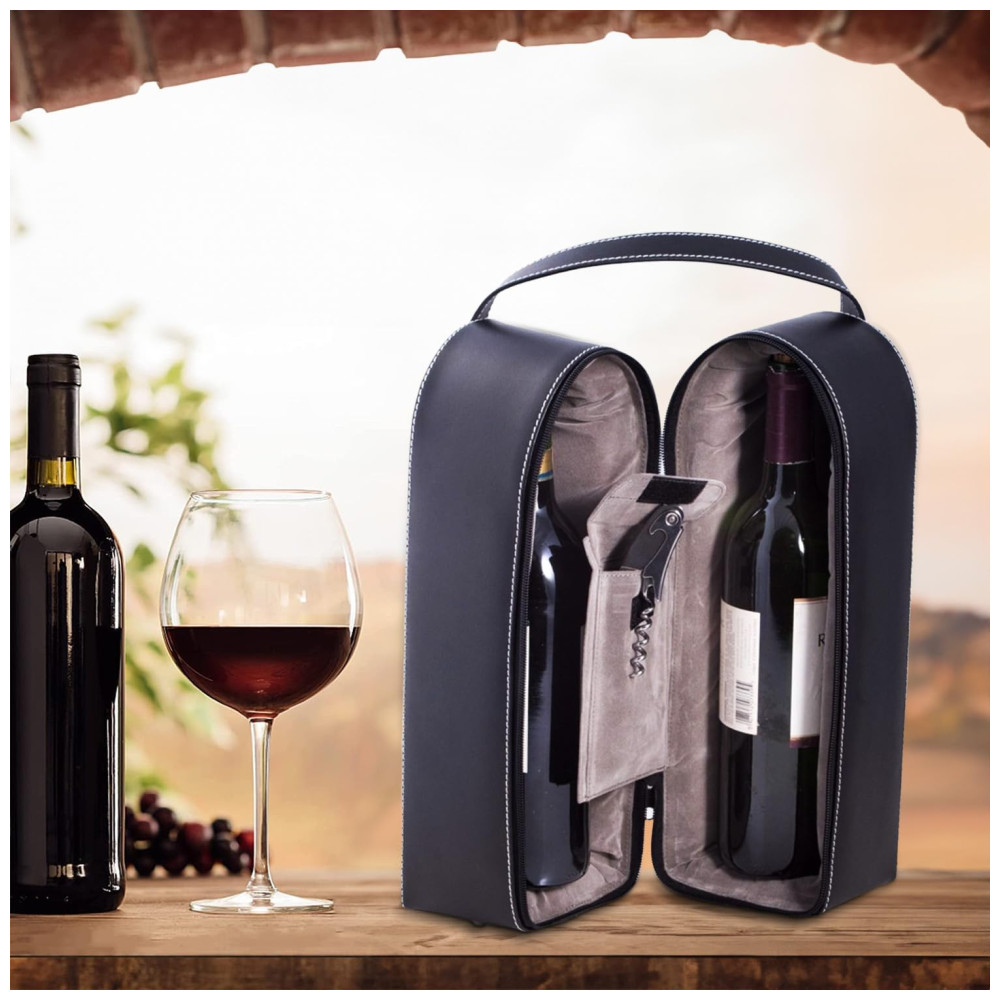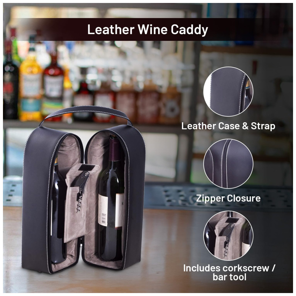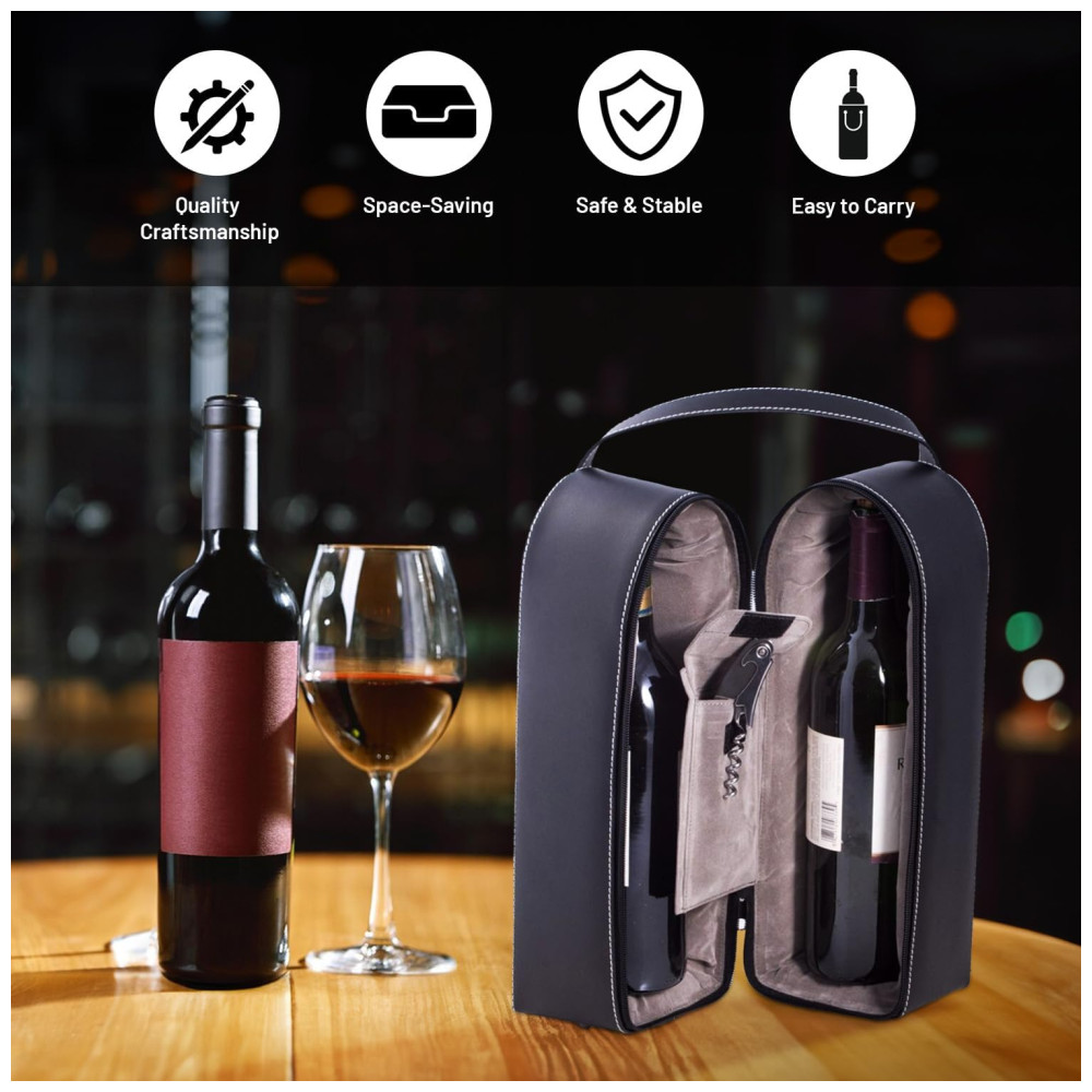 Bey-Berk Porta-Garrafas de Vinho em Couro Preto com Conjunto de Ferramentas Bolsa de Viagem com Armazenamento Seguro e à Prova de Vazamentos