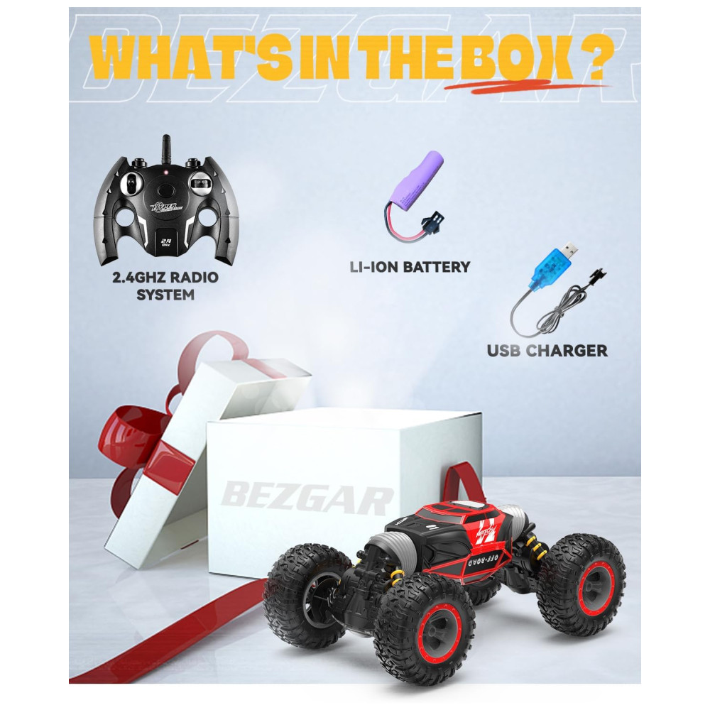BEZGAR Carrinho de Controle Remoto Esala 114 4WD até 15 km h com Baterias Recarregáveis Vermelho