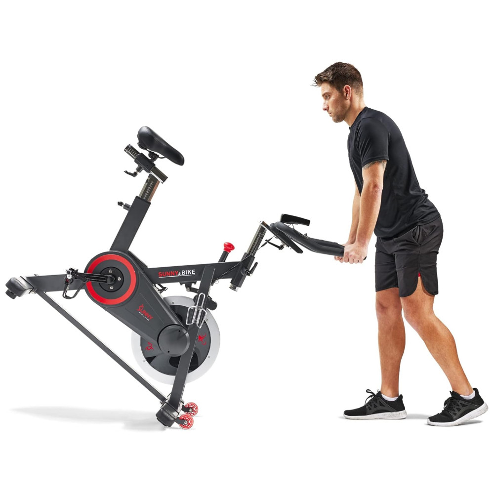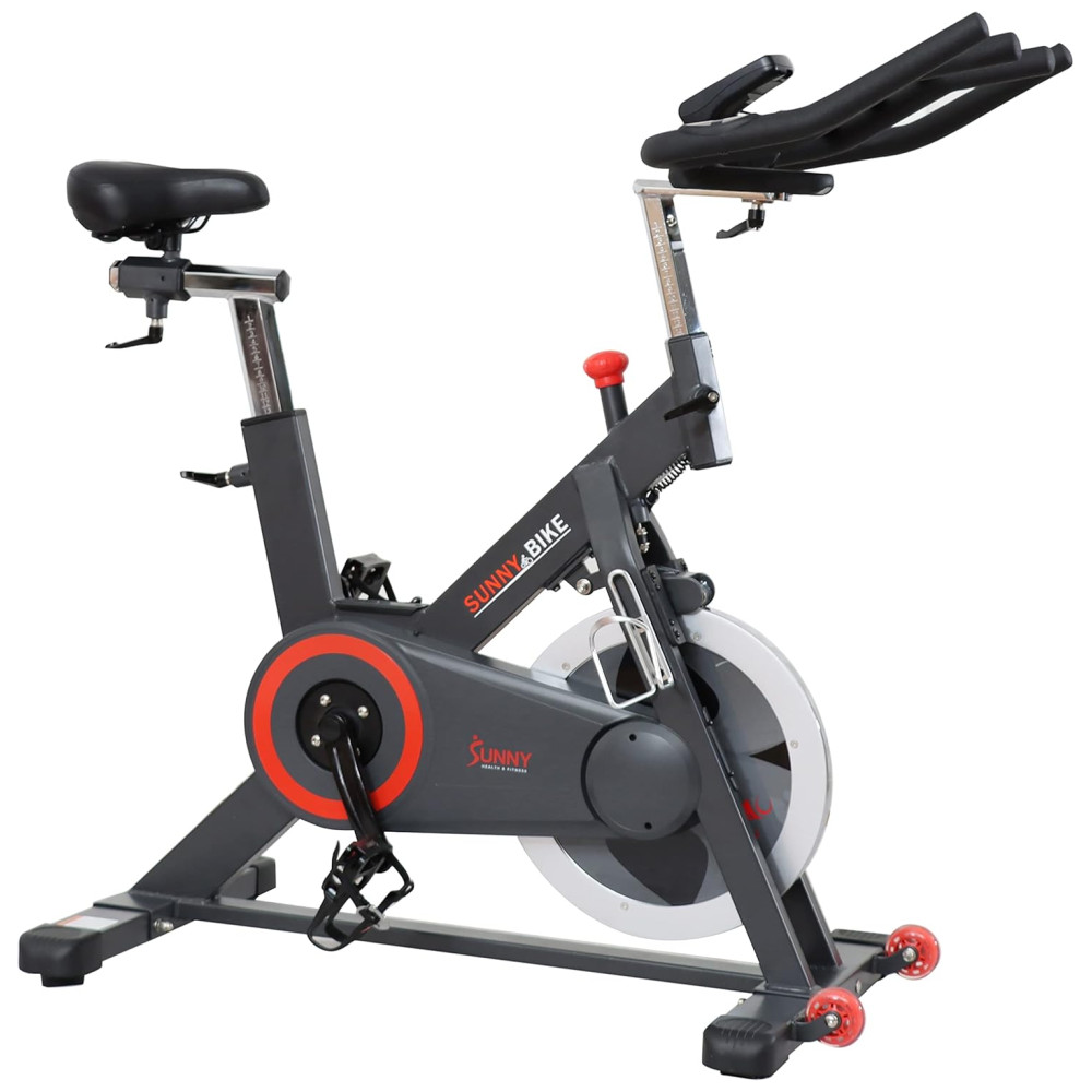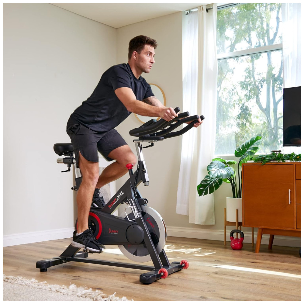 A bicicleta ergométrica Sunny Health & Fitness SF-B1805SMART oferece estrutura robusta de aço, suporte para usuários até 136 kg e volante de inércia com 20 kg para treinos intensivos. Possui resistência magnética por acionamento de correia, oferecendo pedalada silenciosa e ajustes de intensidade precisos. O assento e o guidão são ajustáveis em quatro direções, além de pedais com sistema toe-cage e tiras reguláveis. Conta com suporte para dispositivos móveis, porta-garrafa e rodas de transporte para locomoção prática. A conexão Bluetooth ao aplicativo SunnyFit permite acompanhar métricas, acessar treinos e desafios sem taxas adicionais. O painel facilita o ajuste das funções durante o treino, e o sistema de freio de emergência garante segurança ao usuário.